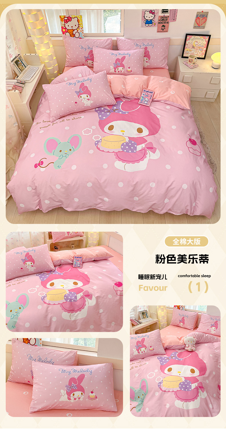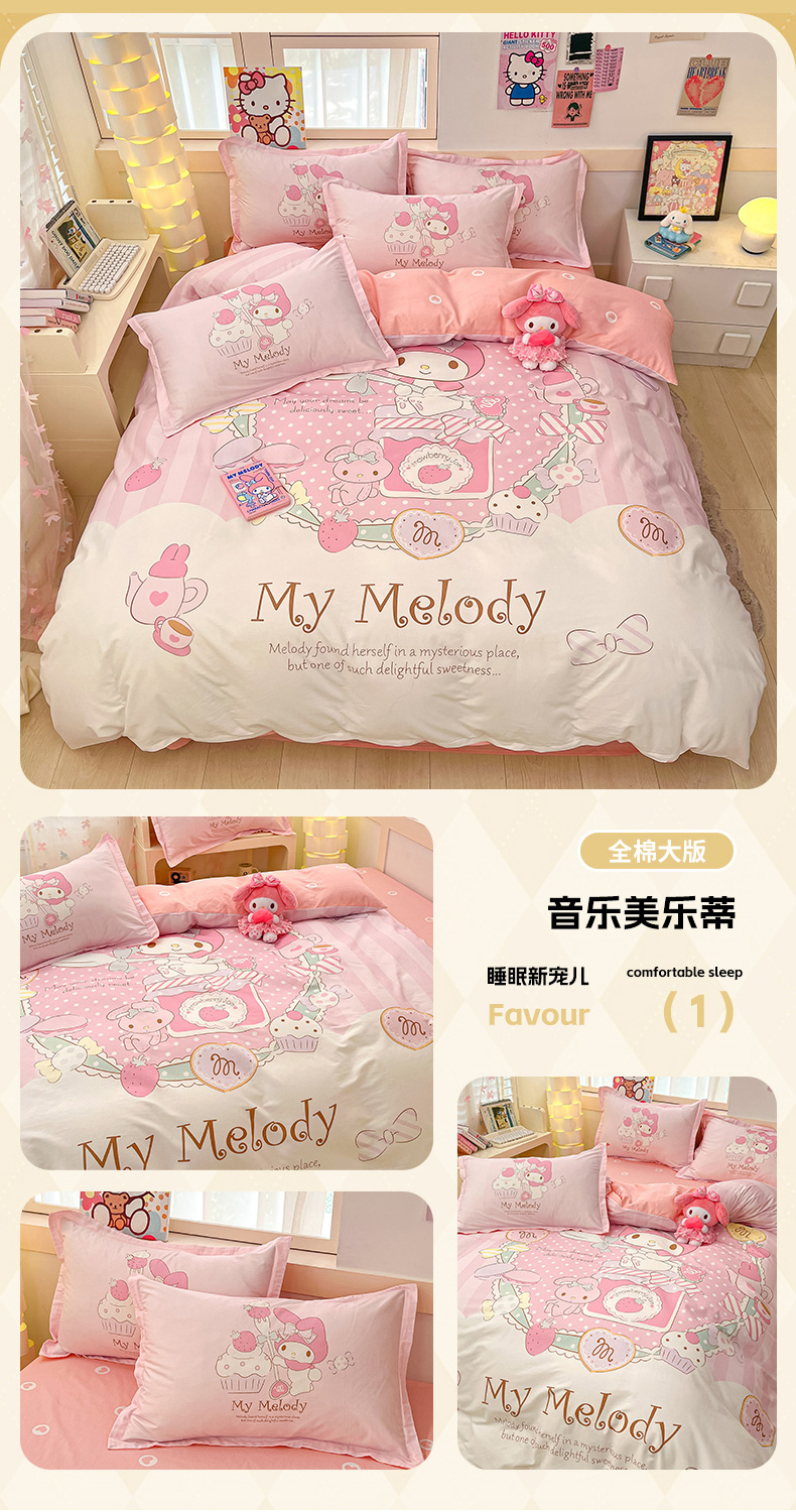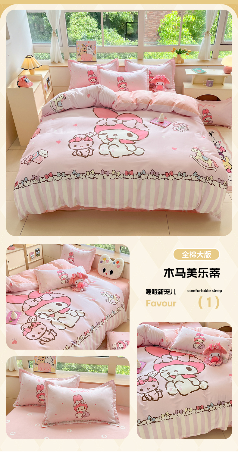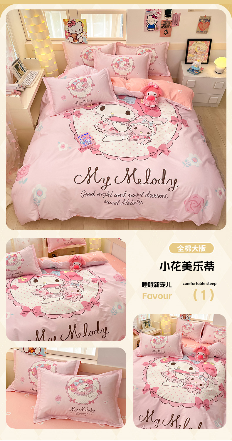 当前位置: 91家纺网 > 商品网购 > 床品套件 > 四件套 > 全棉普通四件套 > 博雅 2025新款三丽鸥大版印花全棉四件套专版花型 全棉大版(升级款信封枕)小花美乐蒂