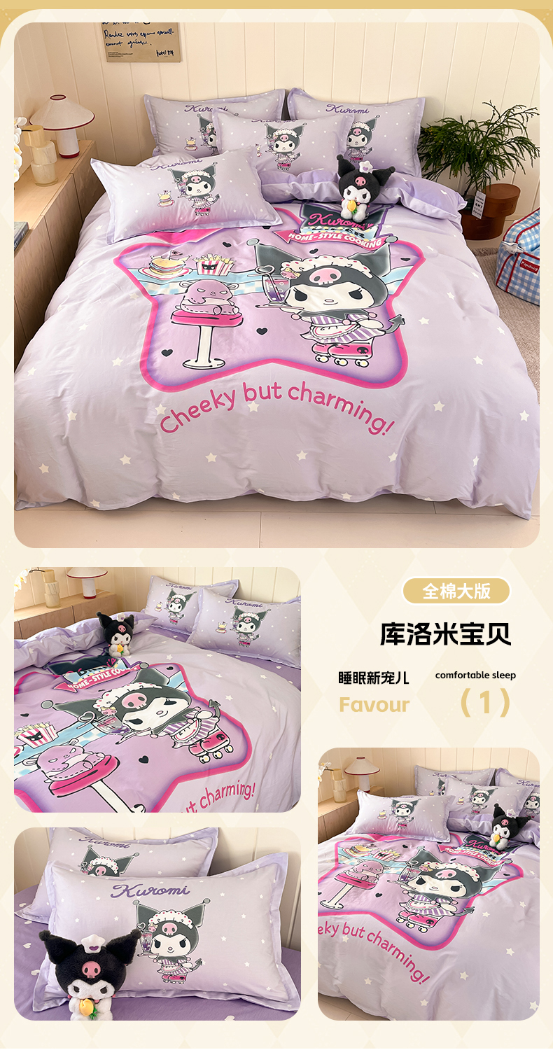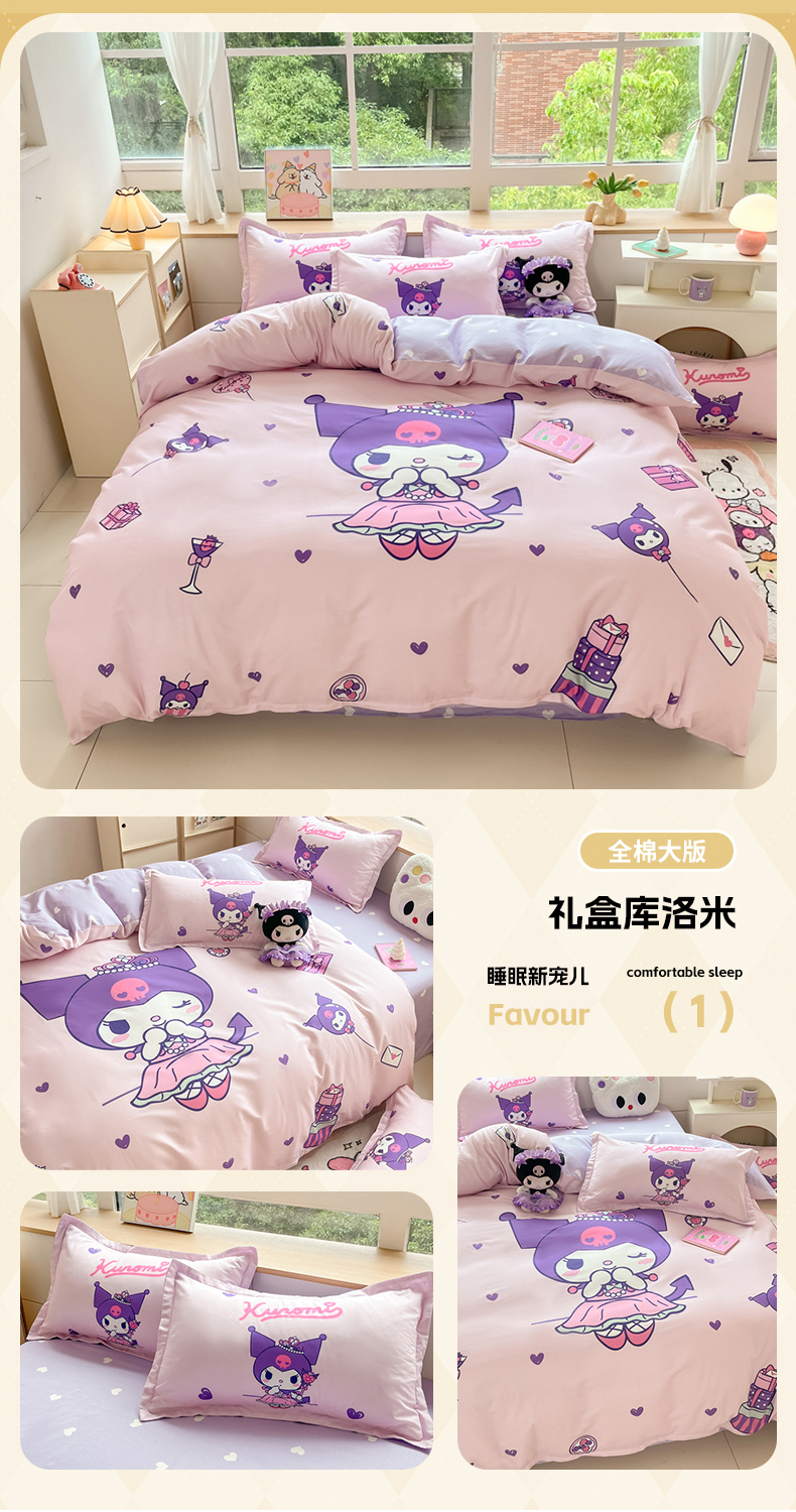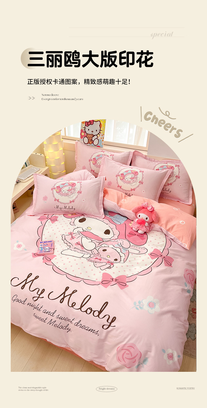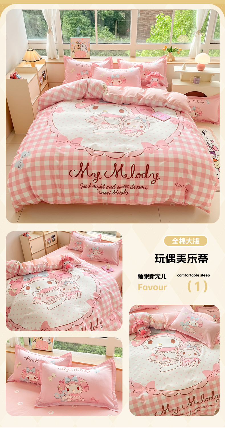 当前位置: 91家纺网 > 商品网购 > 床品套件 > 四件套 > 全棉普通四件套 > 博雅 2025新款三丽鸥大版印花全棉四件套专版花型 全棉大版(升级款信封枕)小花美乐蒂