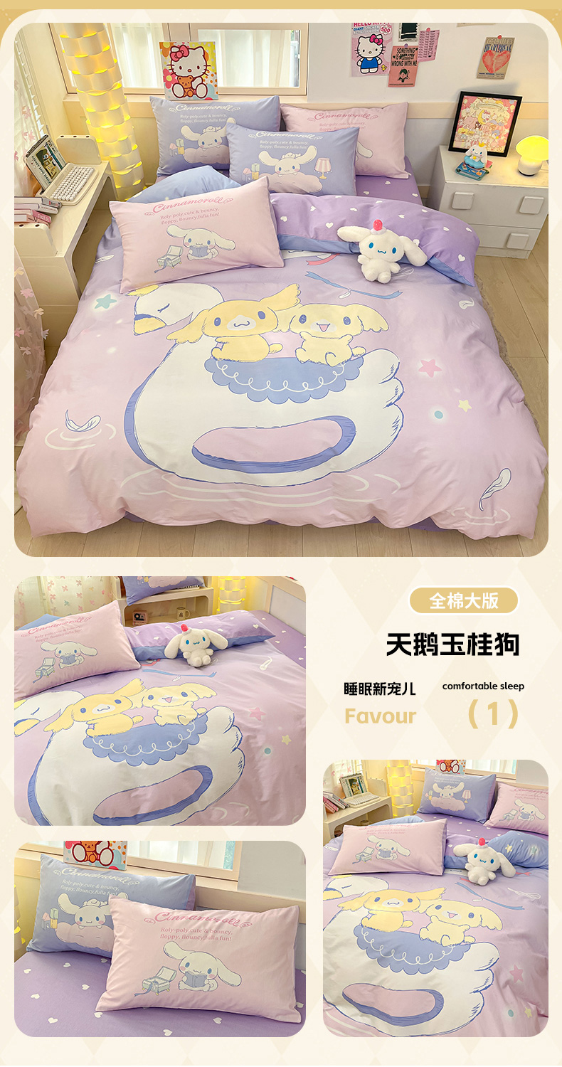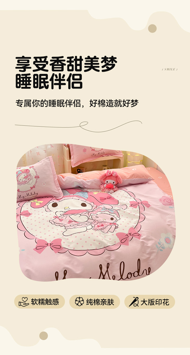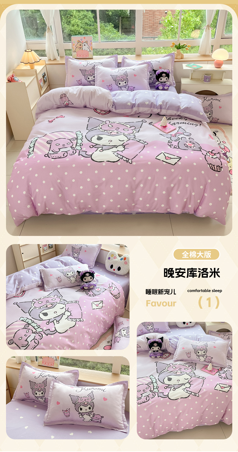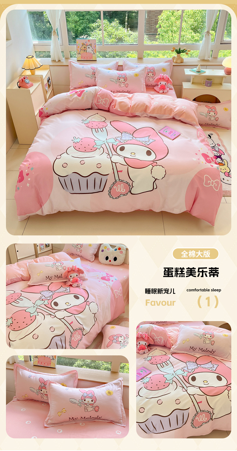 当前位置: 91家纺网 > 商品网购 > 床品套件 > 四件套 > 全棉普通四件套 > 博雅 2025新款三丽鸥大版印花全棉四件套专版花型 全棉大版(升级款信封枕)小花美乐蒂