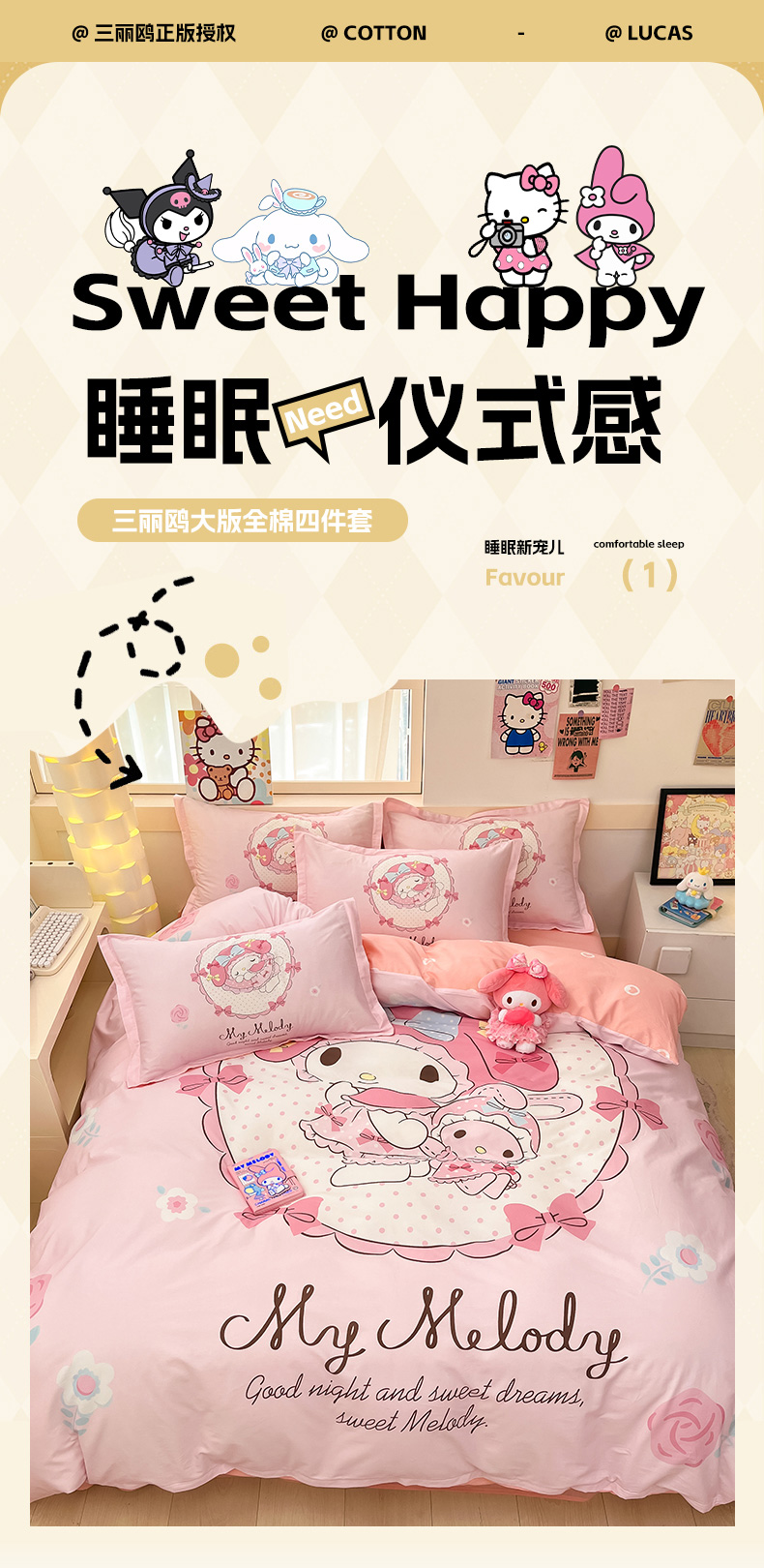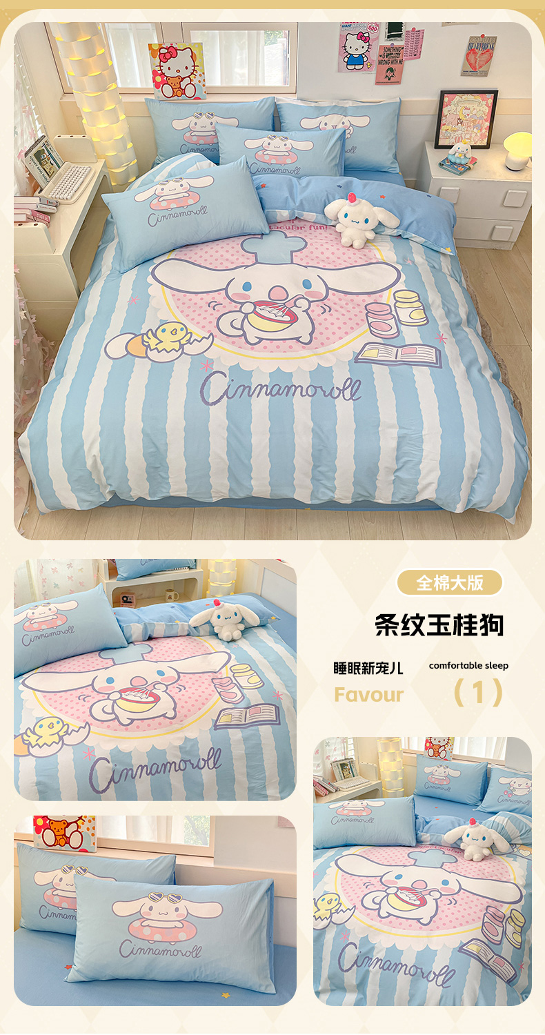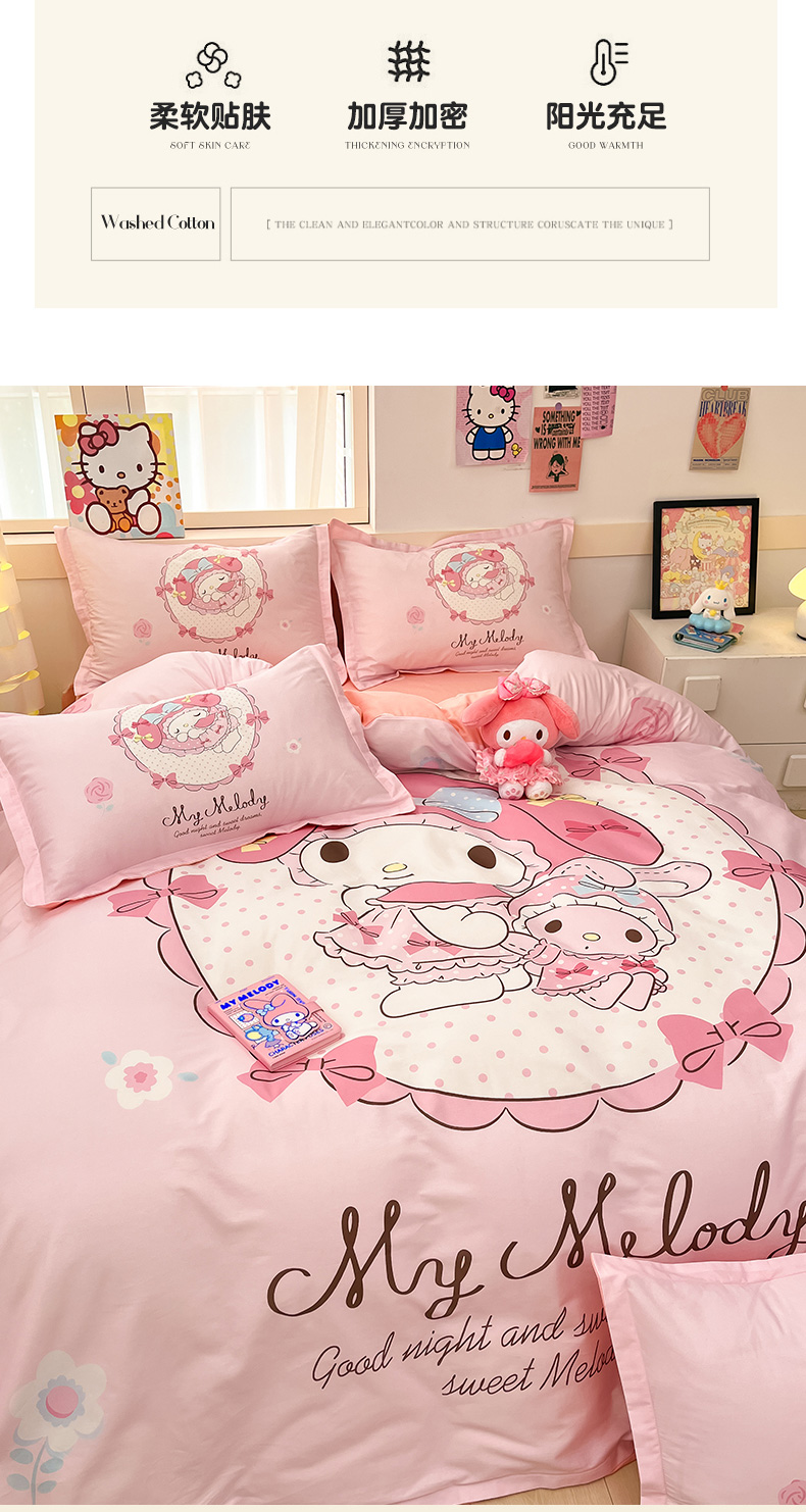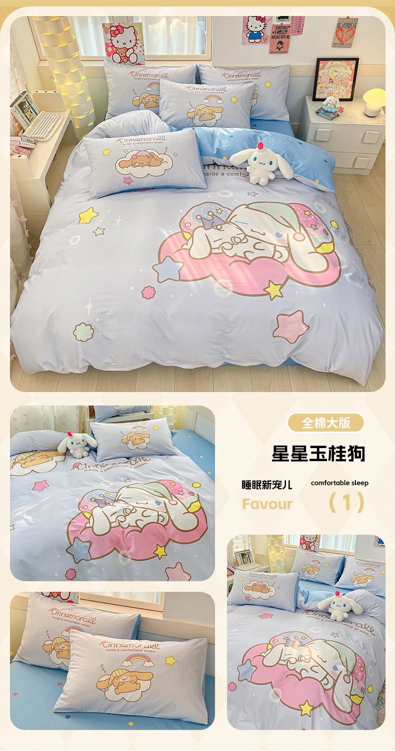 当前位置: 91家纺网 > 商品网购 > 床品套件 > 四件套 > 全棉普通四件套 > 博雅 2025新款三丽鸥大版印花全棉四件套专版花型 全棉大版(升级款信封枕)小花美乐蒂