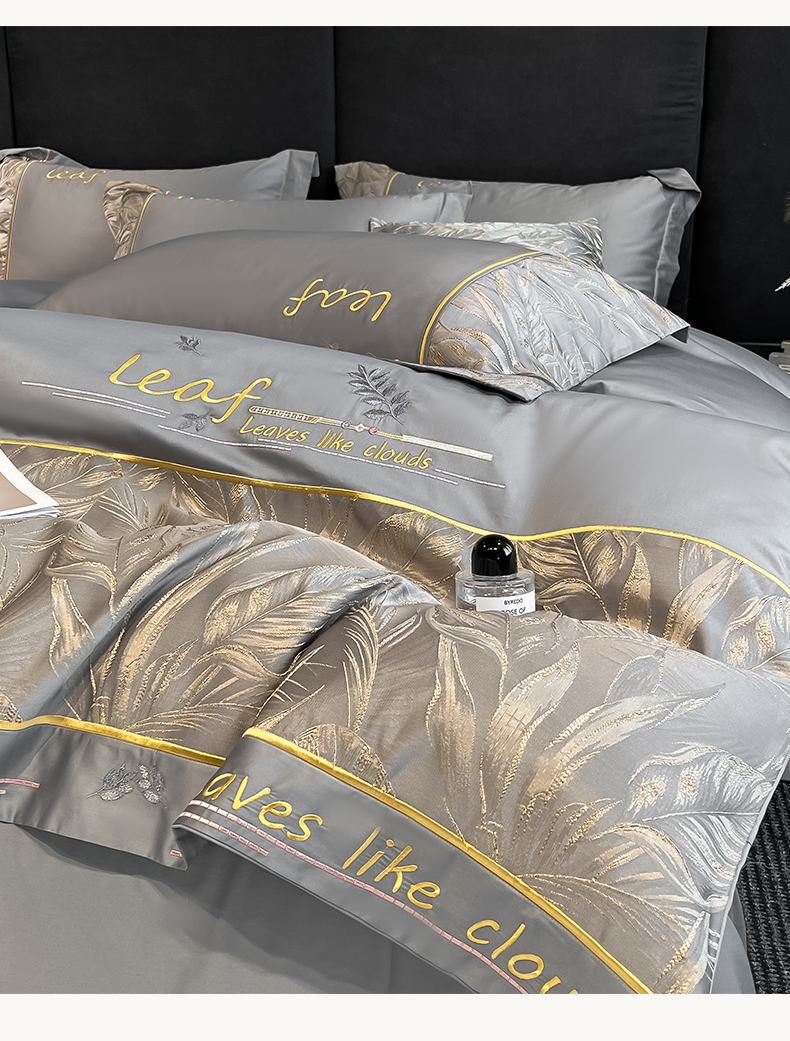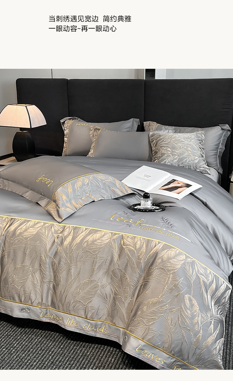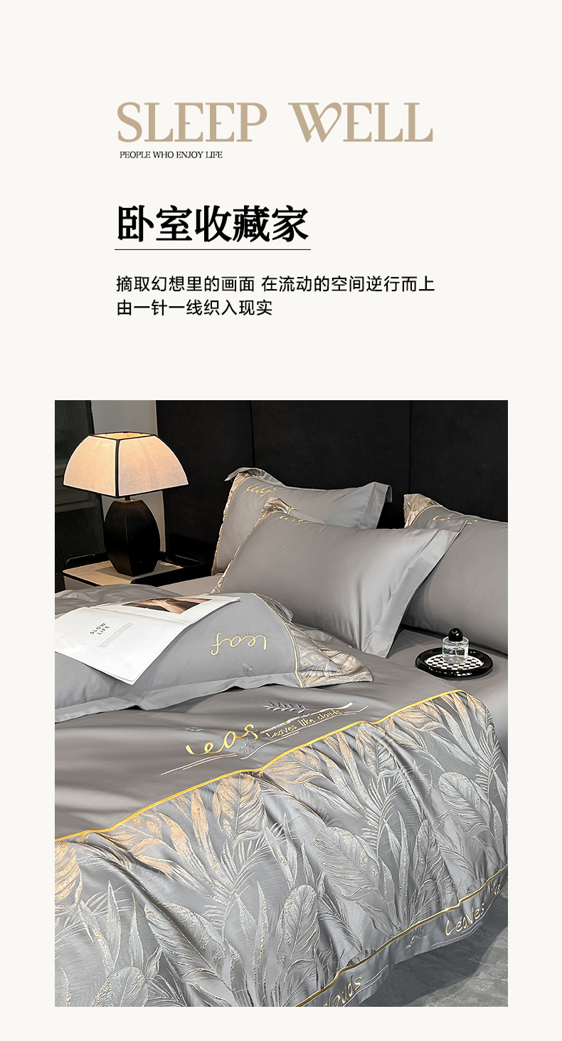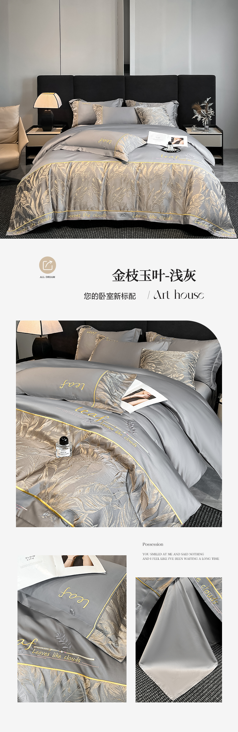 帝王家纺 2025春夏新款浮雕刺绣亲肤棉四件套-金枝玉叶 金枝玉叶-浅灰