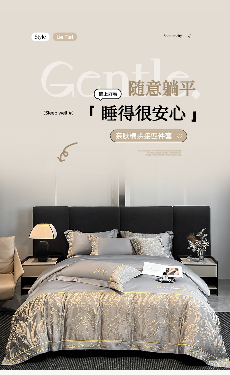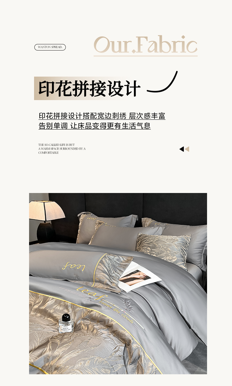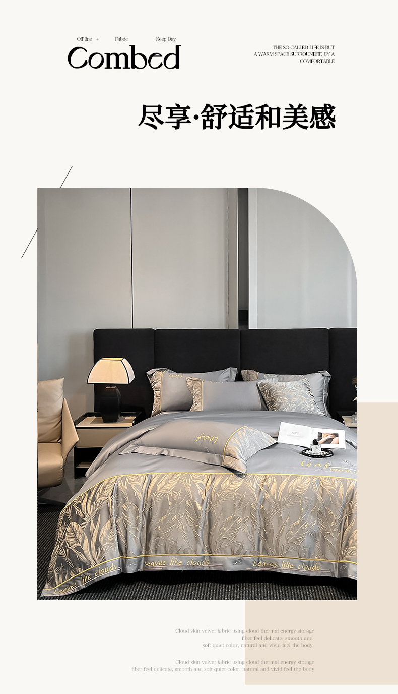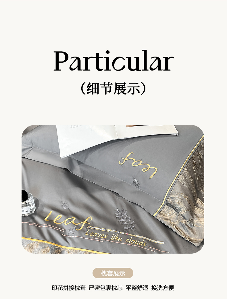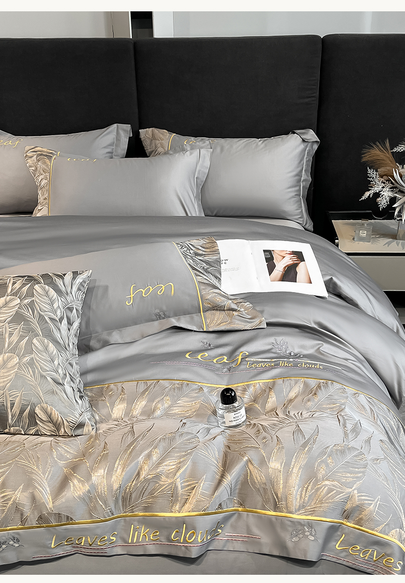 帝王家纺 2025春夏新款浮雕刺绣亲肤棉四件套-金枝玉叶 金枝玉叶-浅灰