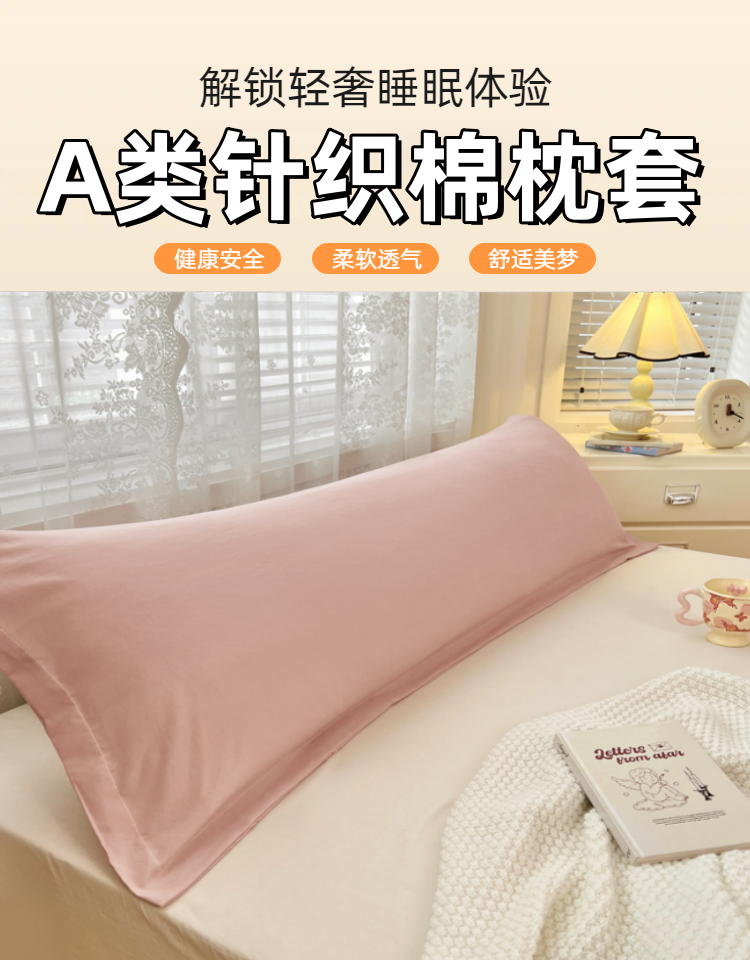 商品名称:圣比熊 2025新款针织棉双层纱枕头套亲肤双人枕套枕芯套枕头内胆套 浅粉