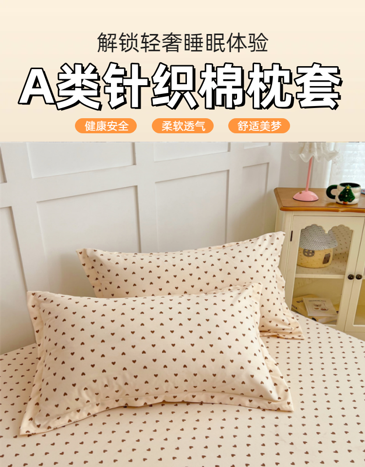 商品名称:圣比熊 2025新款针织棉双层纱枕头套双人枕套枕芯套宿舍单人枕头内胆套 浪漫爱心