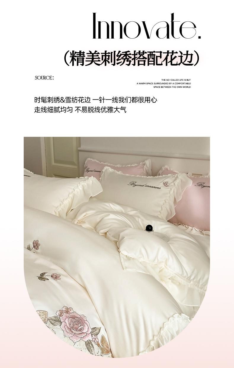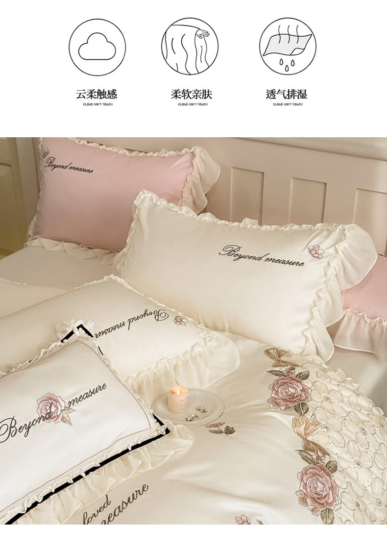 (总)七七家纺 2025新款水洗棉刺绣四件套梦见系列,梦见豆沙,梦见粉,梦见黄,梦见蓝,梦见紫