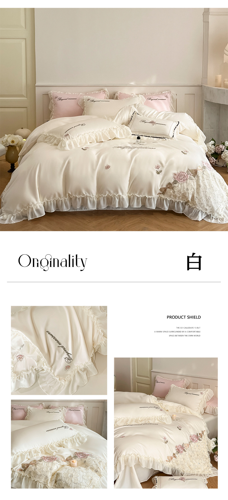 商品名称:七七家纺 2025新款冰丝刺绣款四件套幽兰系列 幽兰白