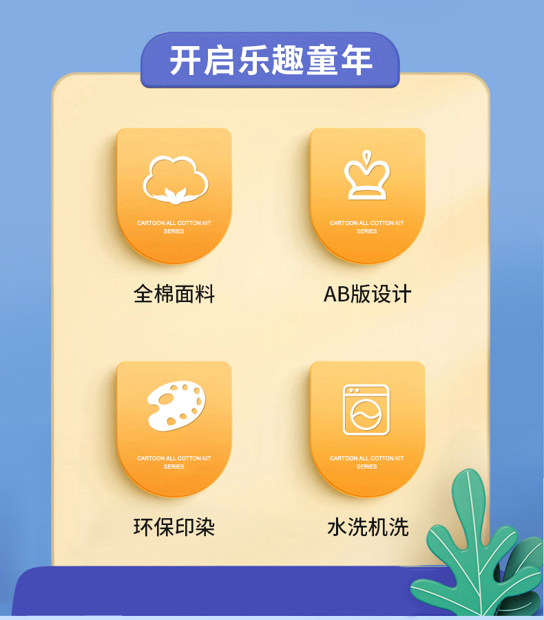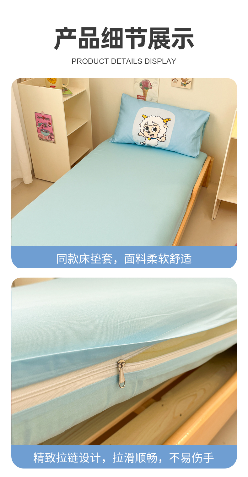 幼儿园尺寸: 被套 120*150,垫套 60.*135, 枕套30*50一个