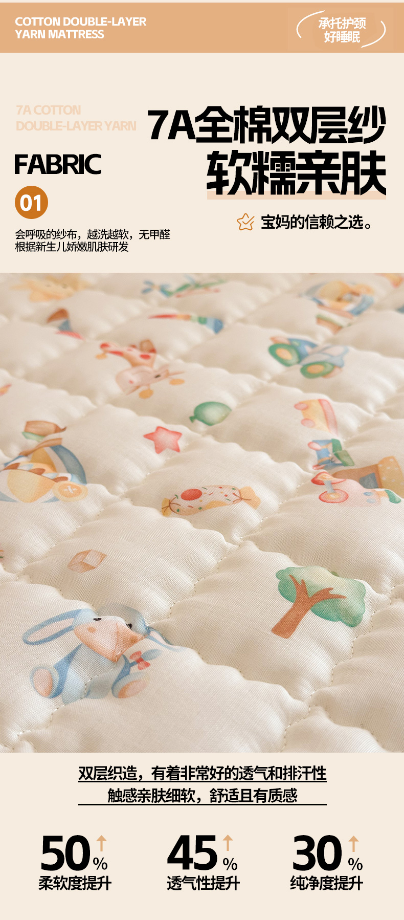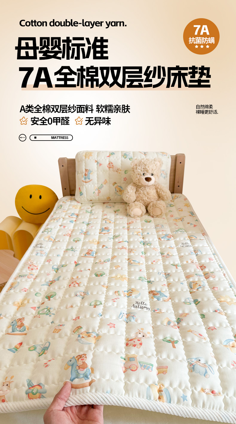 当前位置: 91家纺网 > 商品网购 > 床垫/床褥 > 普通床垫 > 嗨生活 2025新款7A抗菌全棉双层纱床垫 床褥 幼儿园床垫 儿童床垫 支持定做 玩具屋