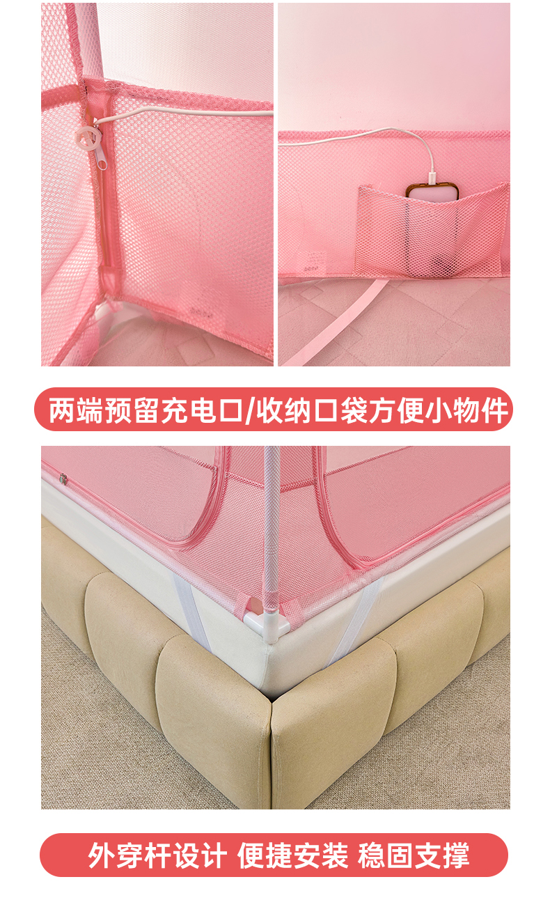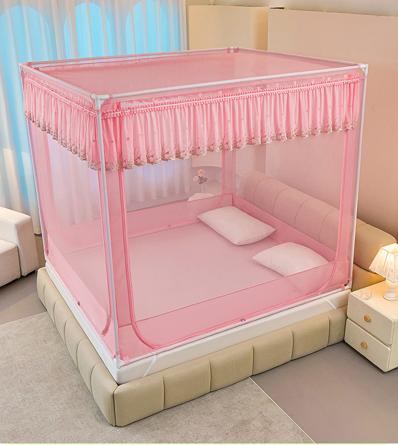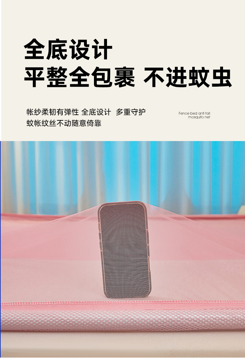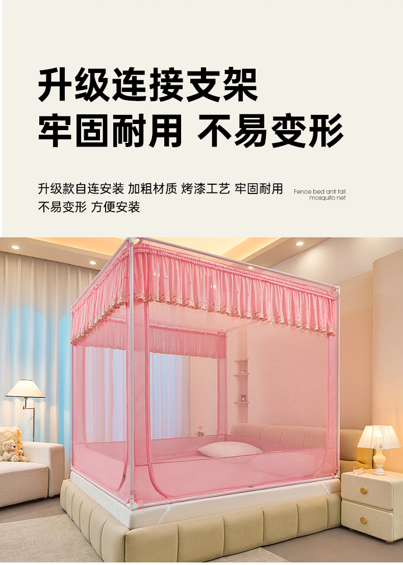 (总)2025新款双层花边全包围床笠款三开门蚊帐-幽梦星辰,奶黄,藕玉,颜淡蓝