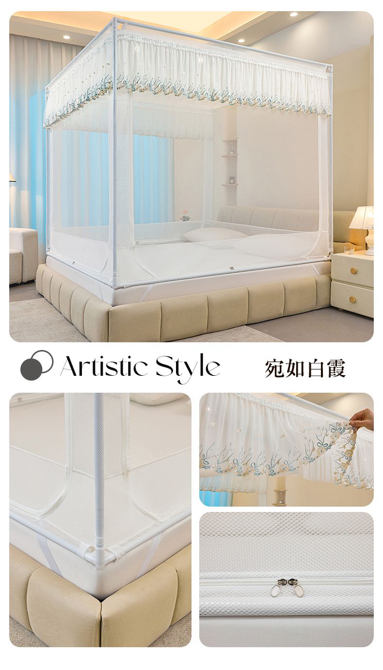 (总)梦尔佳 2025新款落地款蚊帐-怜香惜玉系列860型号,洁白,藕玉,米黄,五彩缤纷:蓝灰,淡蓝,五彩缤纷:白