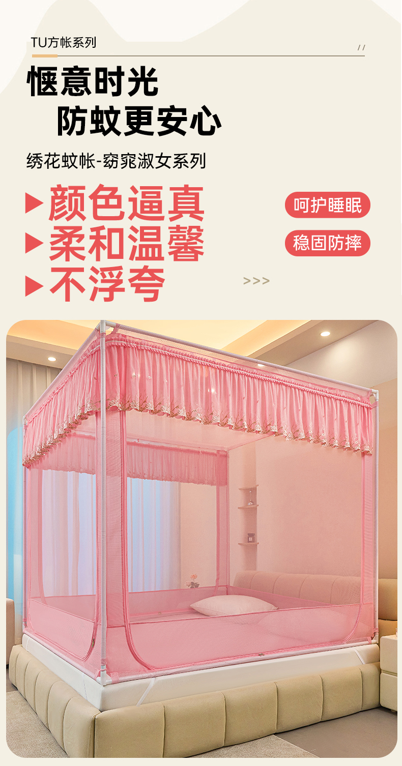 (总)梦尔佳蚊帐2025新款TU绣花蚊帐-859窈窕淑女系列,温馨如玉,高雅银灰,清爽水蓝,宛如白霞,喜庆粉红,优雅嫩黄