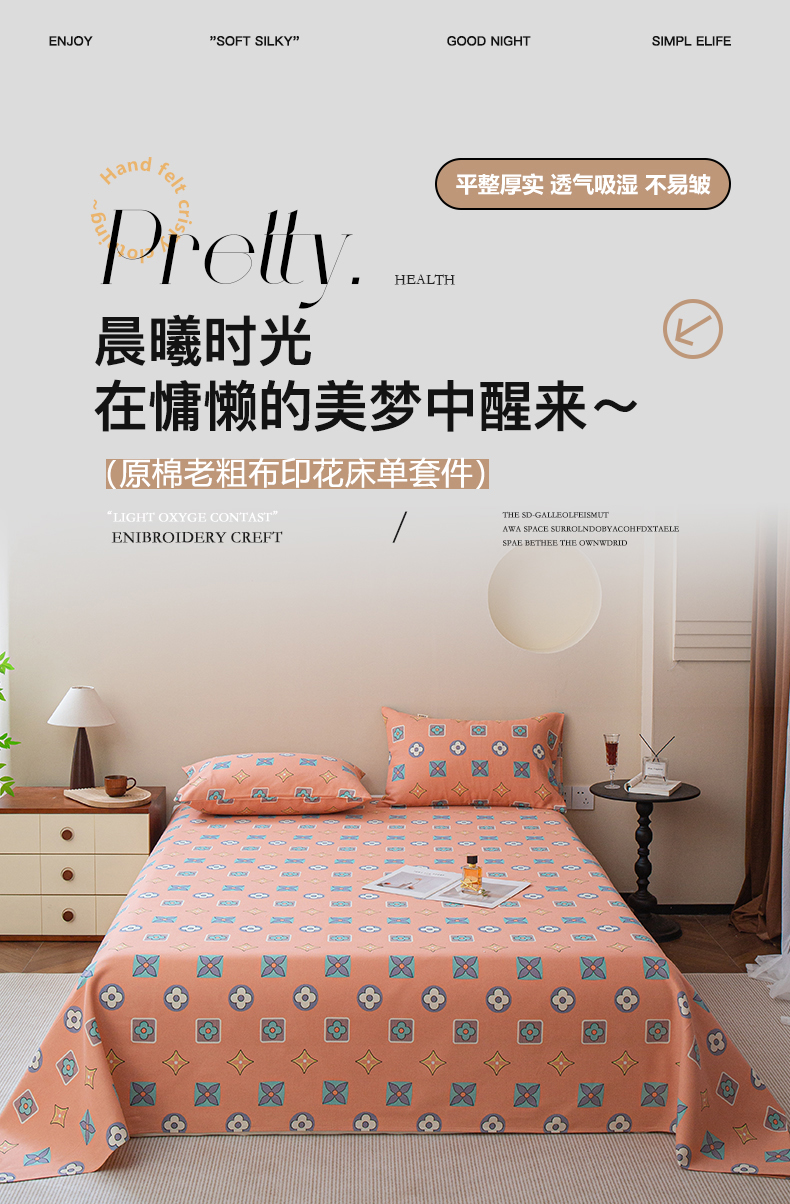 邵依家纺 2025新款原棉老粗布印花床单系列 香花烂漫-粉