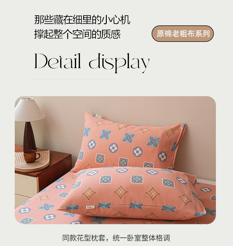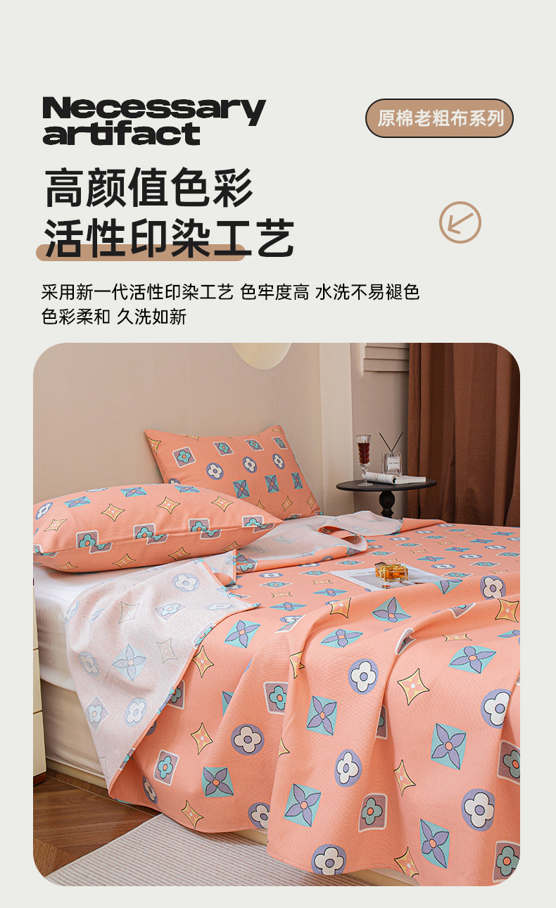 • 91家纺网 家纺一手货源 找家纺 邵依家纺 2025新款原棉老粗布印花床单系列 香花烂漫-粉