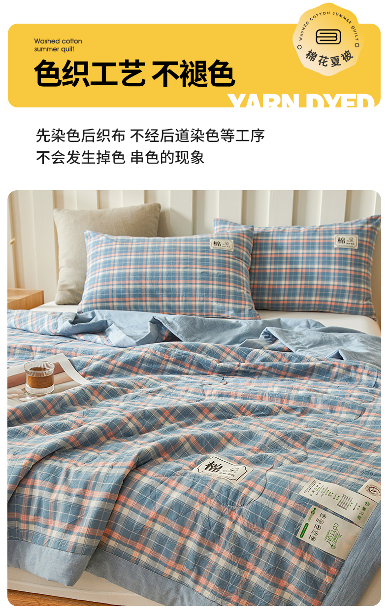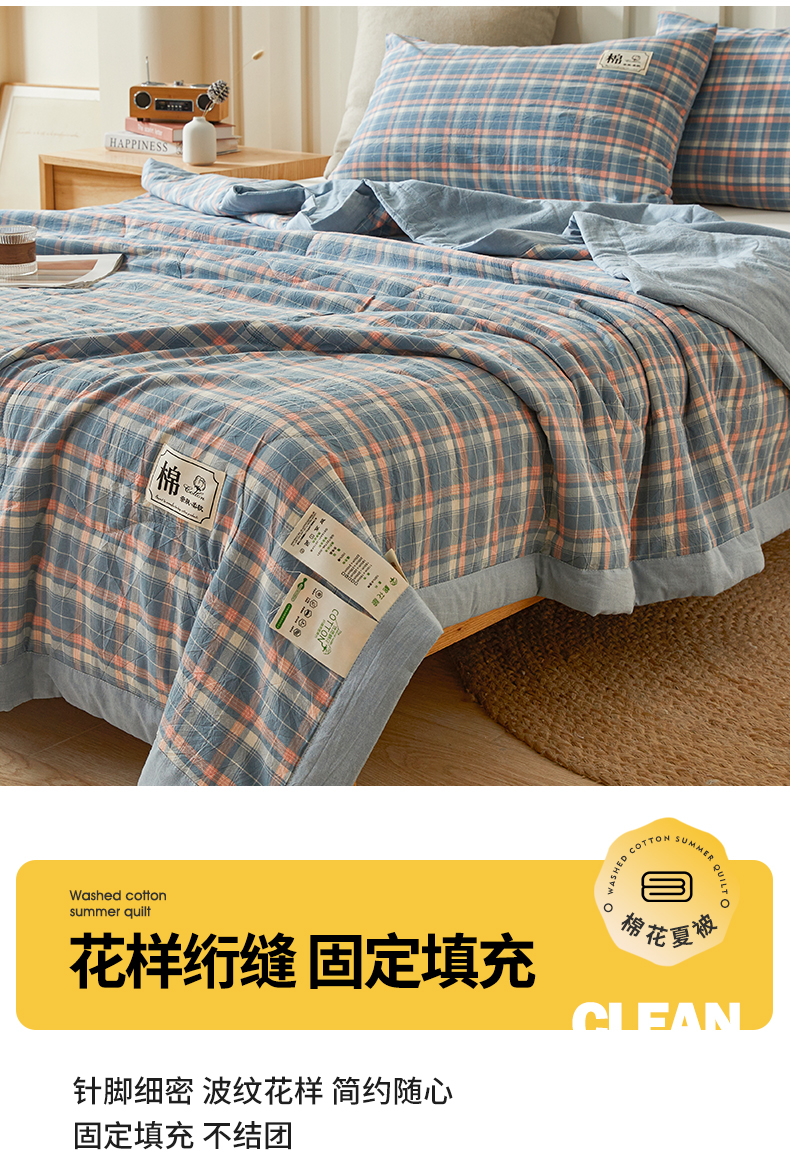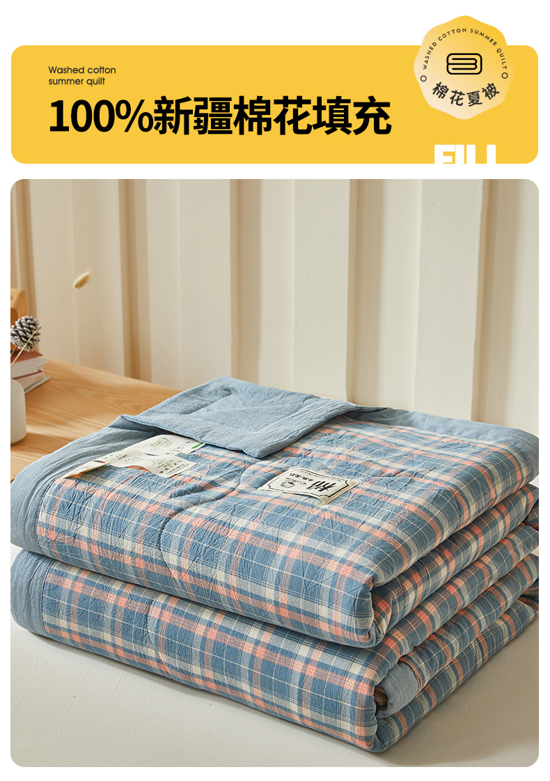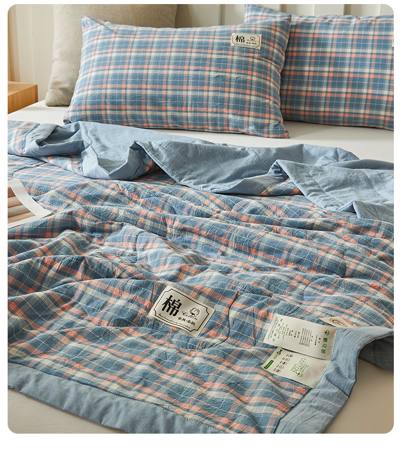• 91家纺网 家纺一手货源 找家纺 招财星家纺 2025新款A类色织水洗棉夏被新疆棉花被空调被夏凉被 格韵 蓝粉