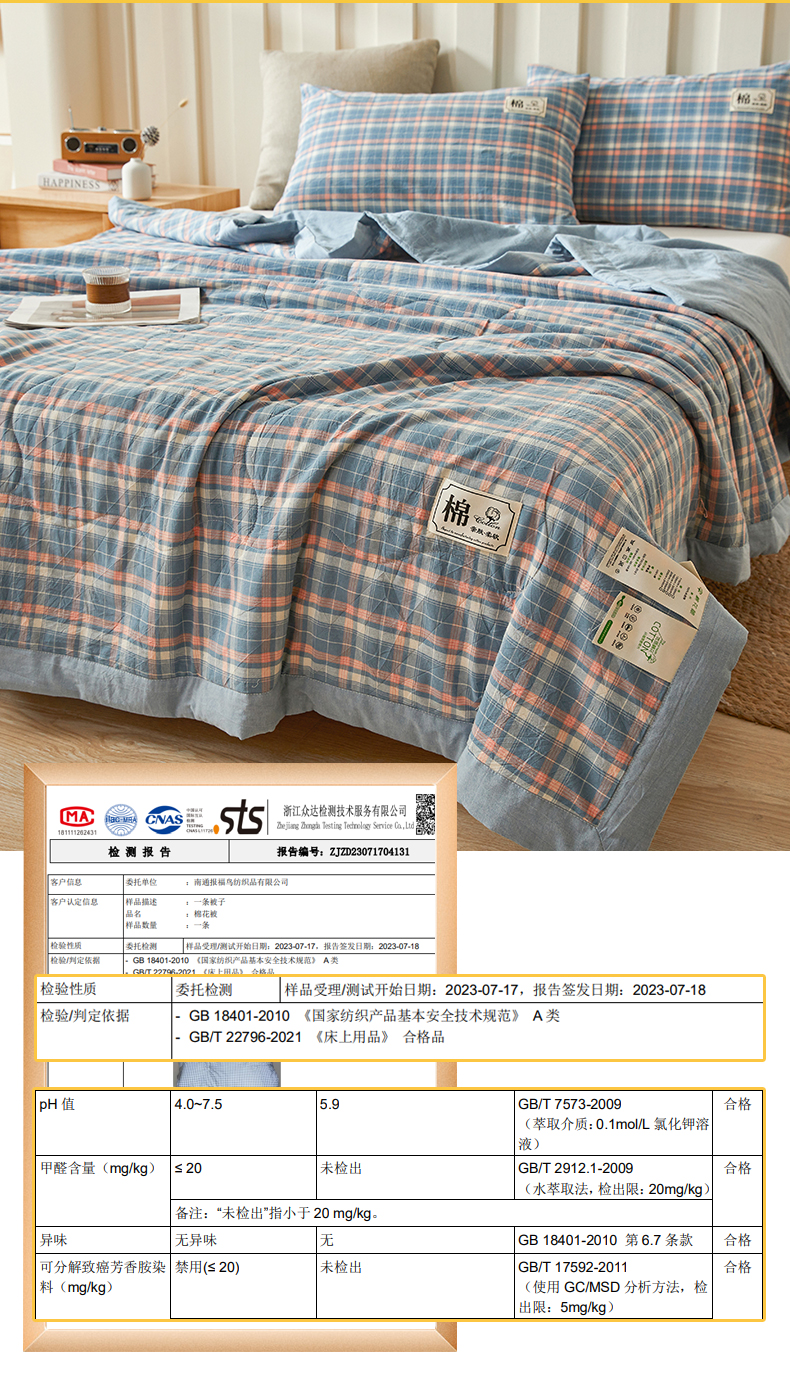 当前位置: 91家纺网 > 商品网购 > 被子 > 夏被 > 招财星家纺 2025新款A类色织水洗棉夏被新疆棉花被空调被夏凉被 格韵 蓝粉