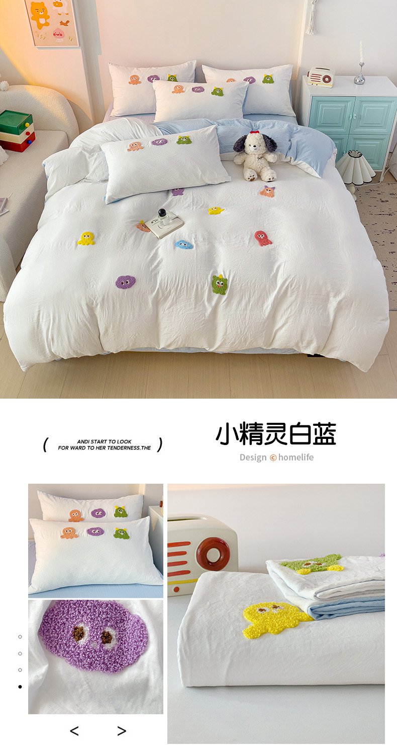 当前位置: 91家纺网 > 商品网购 > 床品套件 > 四件套 > 毛巾绣四件套 > 韩巢家纺 2025超柔水洗棉毛巾绣床上用品四件套-小精灵系列(提供卖家秀 ) 小精灵白蓝