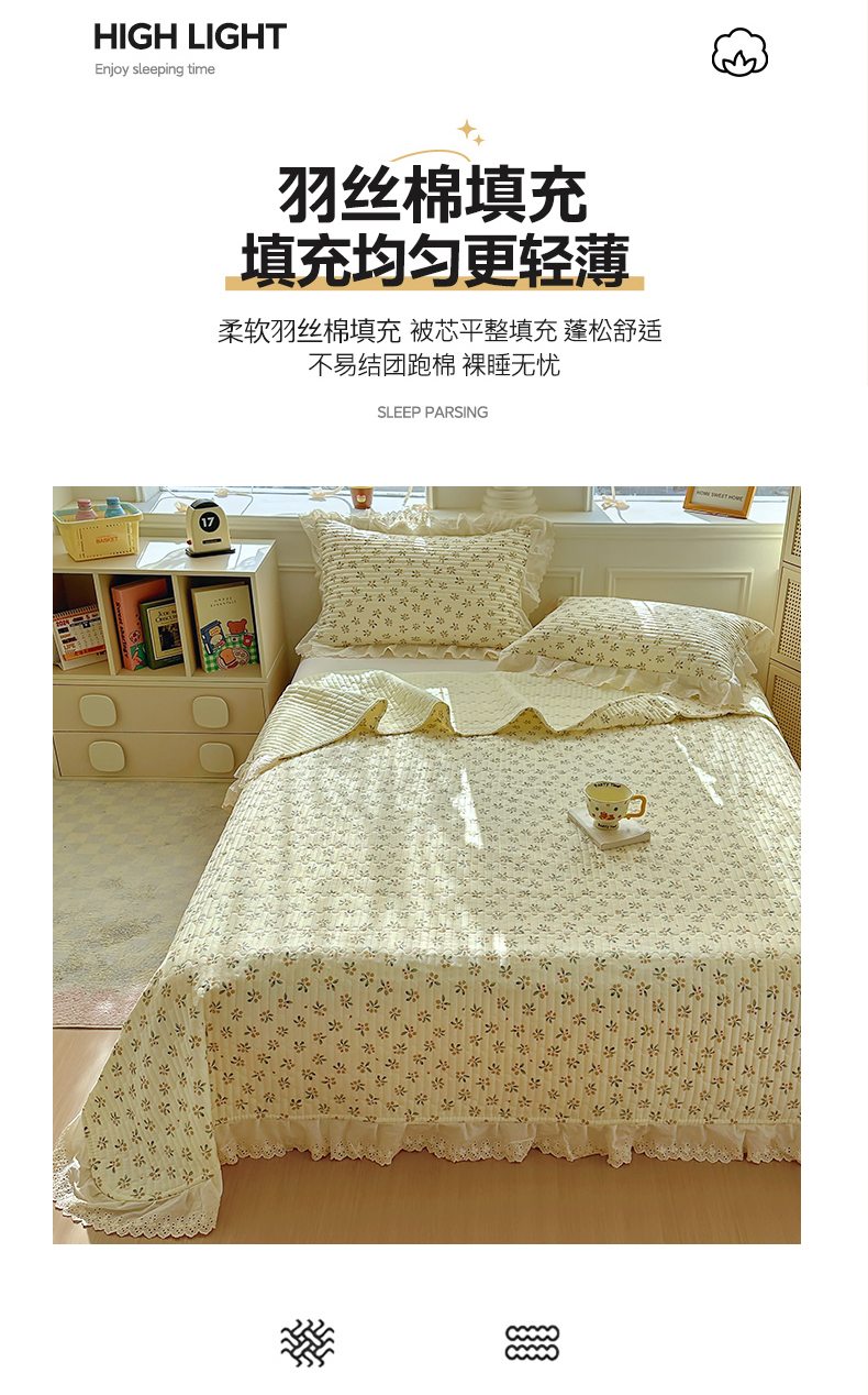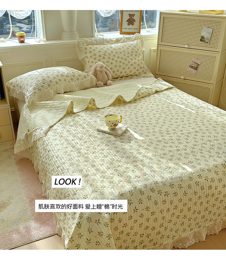 商品名称:美梦家纺 2025新款A类全棉13372花边床盖四件套-白边 白边-意礼