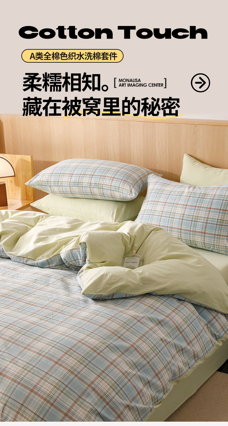 当前位置: 91家纺网 > 商品网购 > 床品套件 > 四件套 > 水洗棉四件套 > 趣色家纺 2025新款全棉色织水洗棉四件套 春风曲
