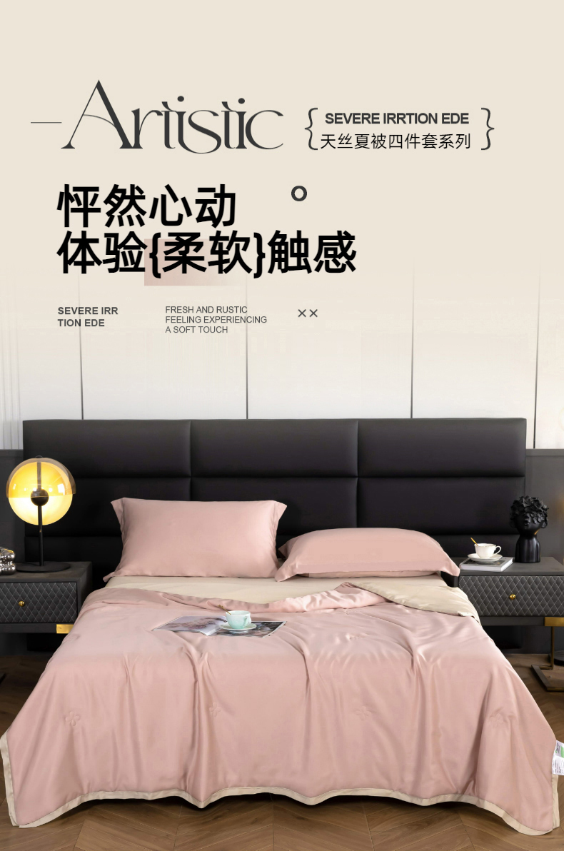 天瑜家纺 2025新款纯色天丝夏被 豆沙+香槟