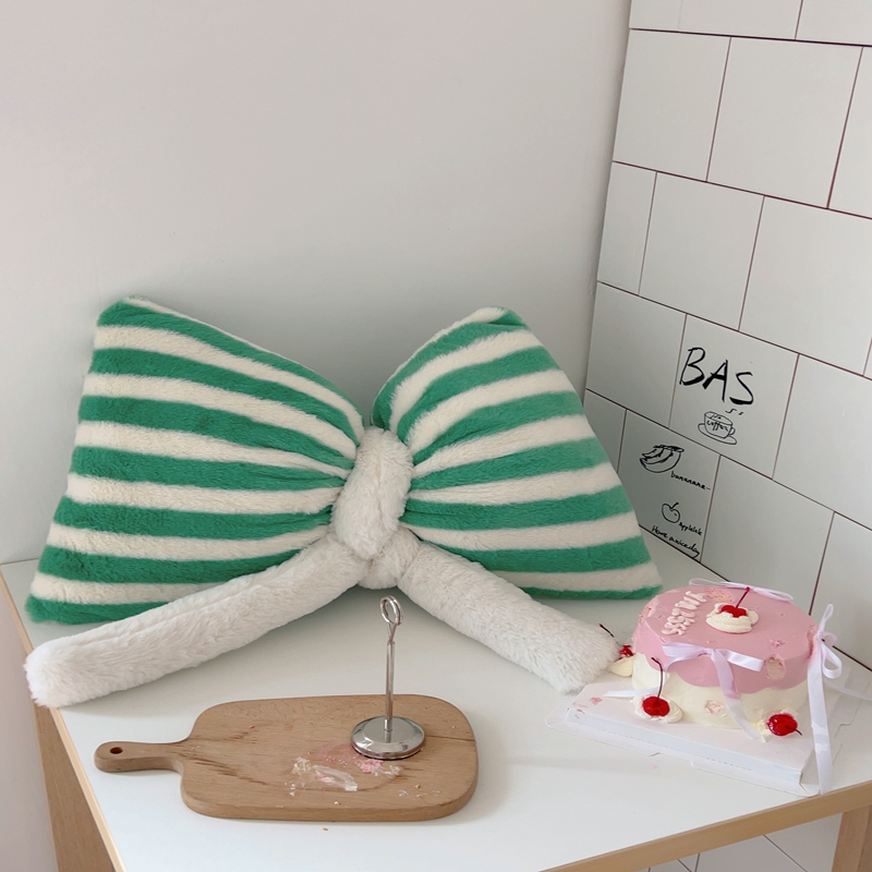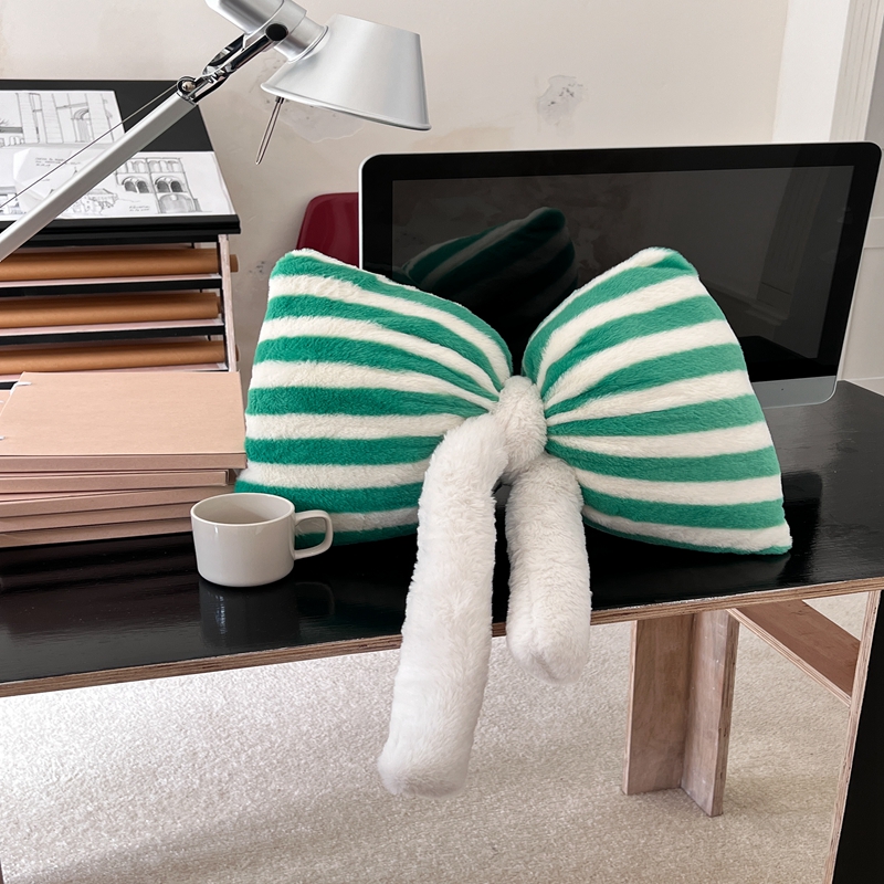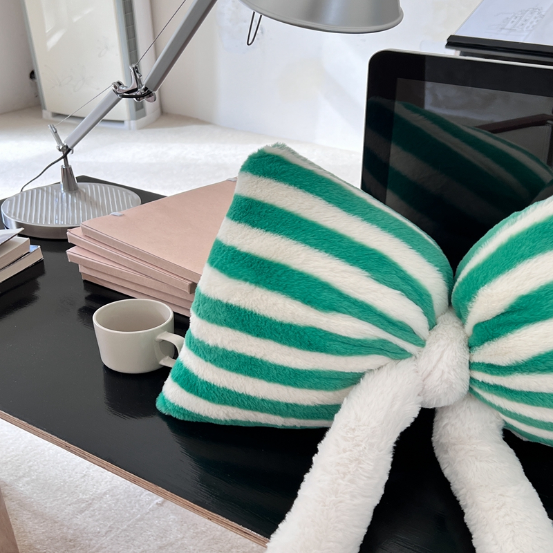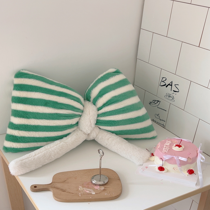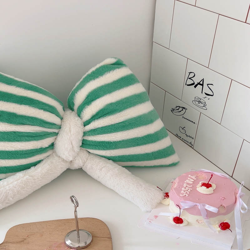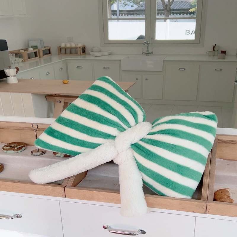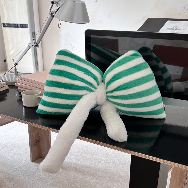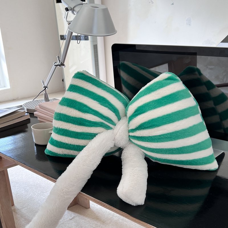 桔子家纺 2025新款蝴蝶结抱枕 绿条纹蝴蝶结