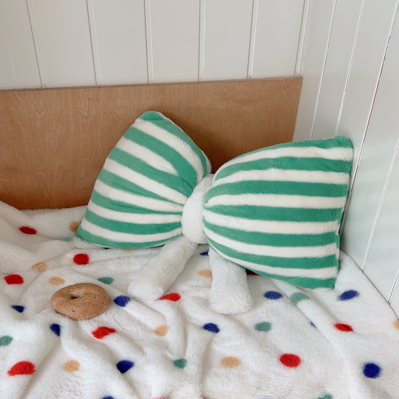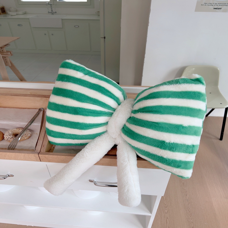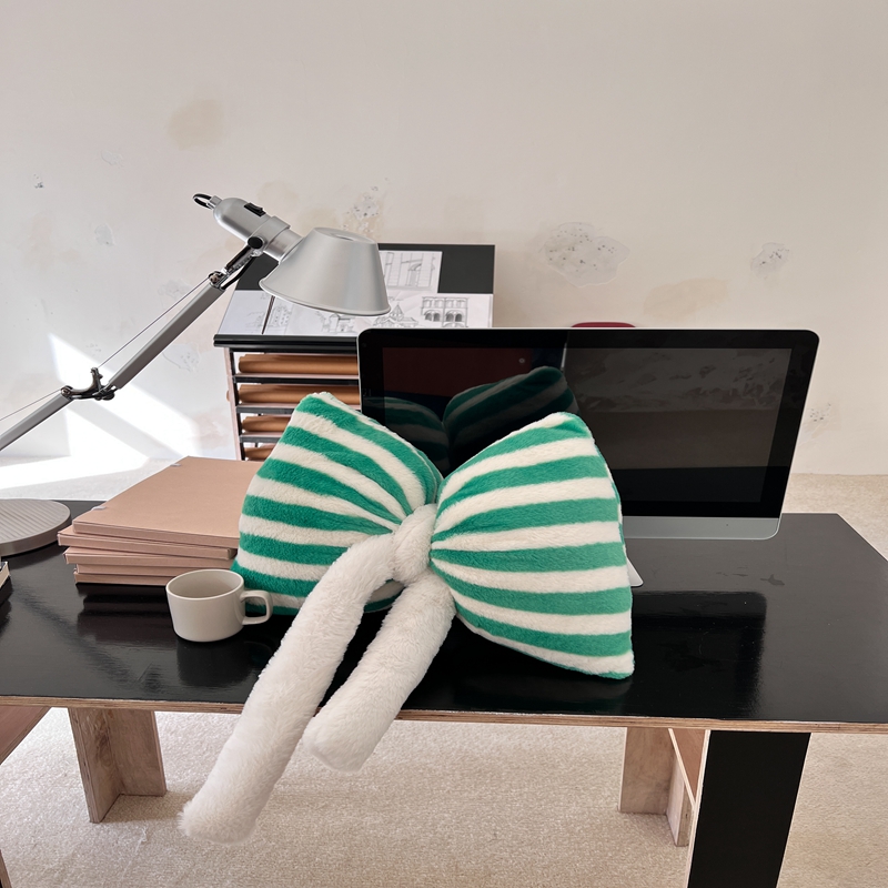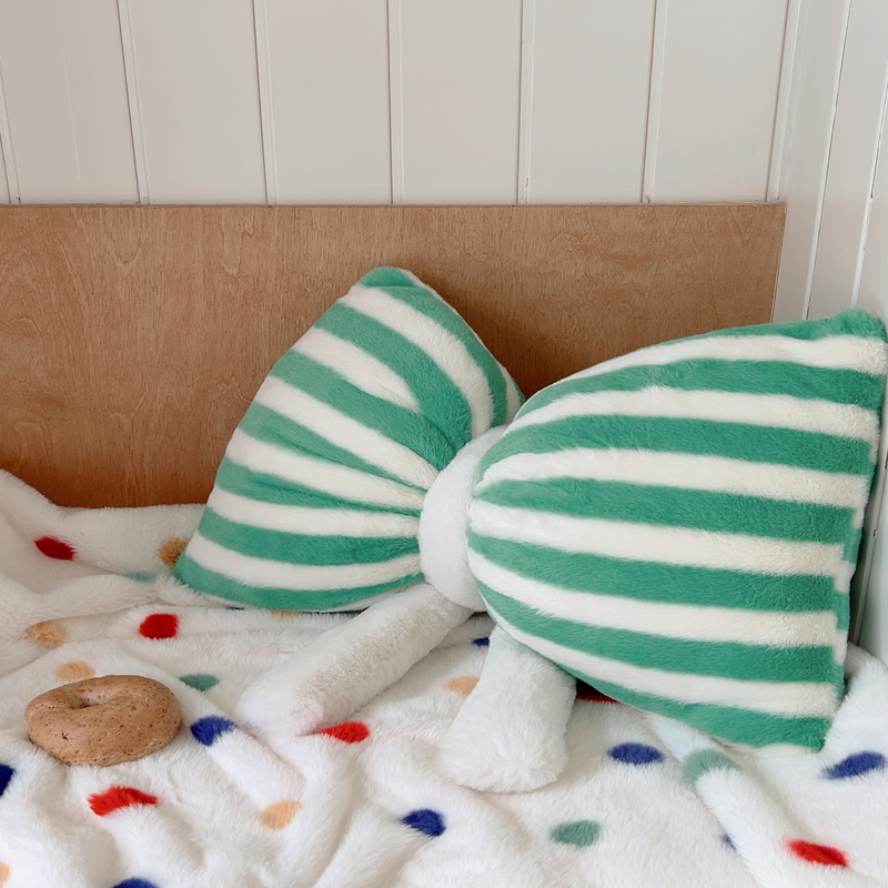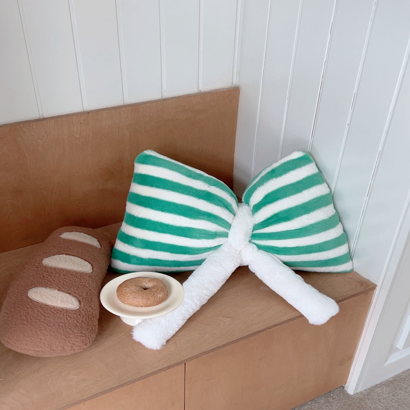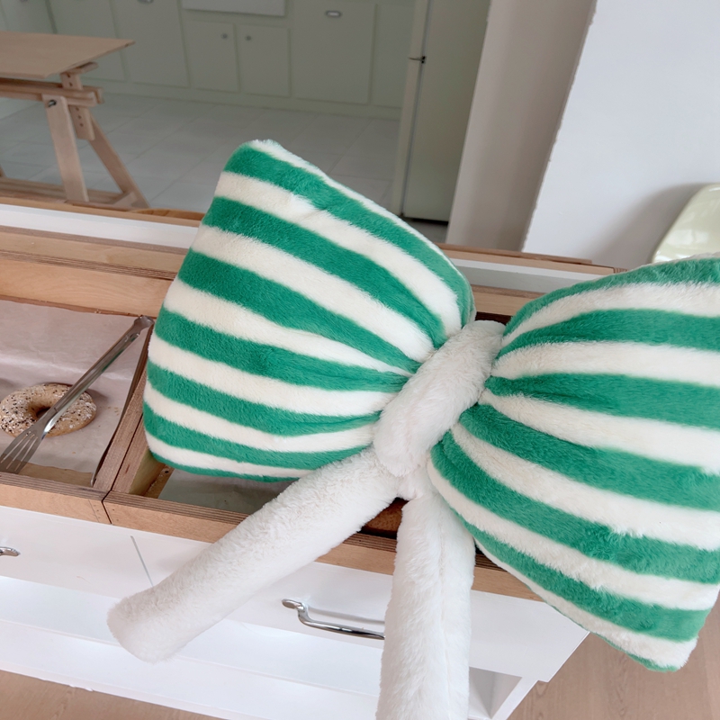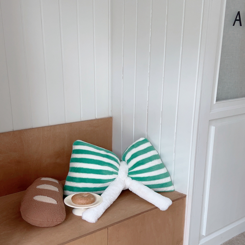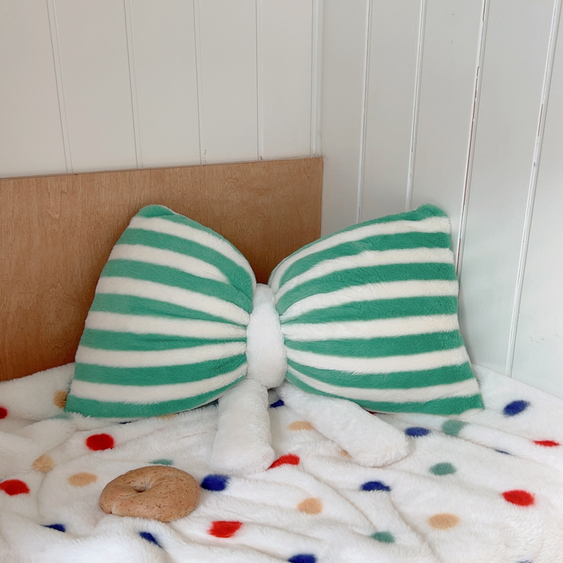 桔子家纺 2025新款蝴蝶结抱枕 绿条纹蝴蝶结