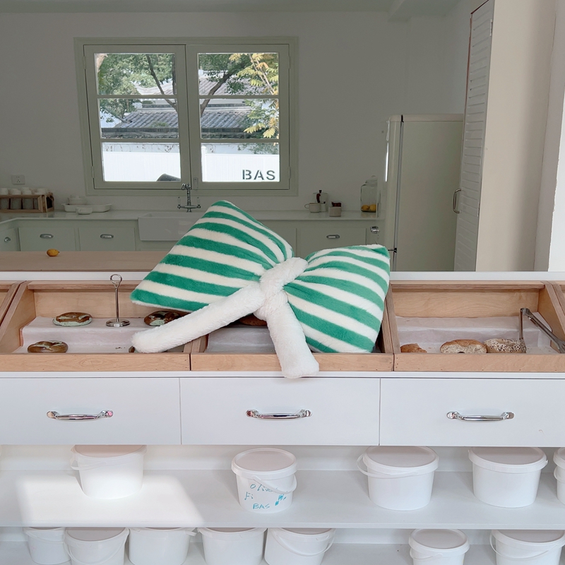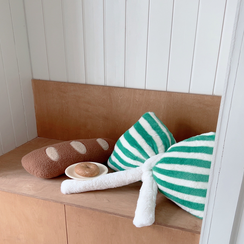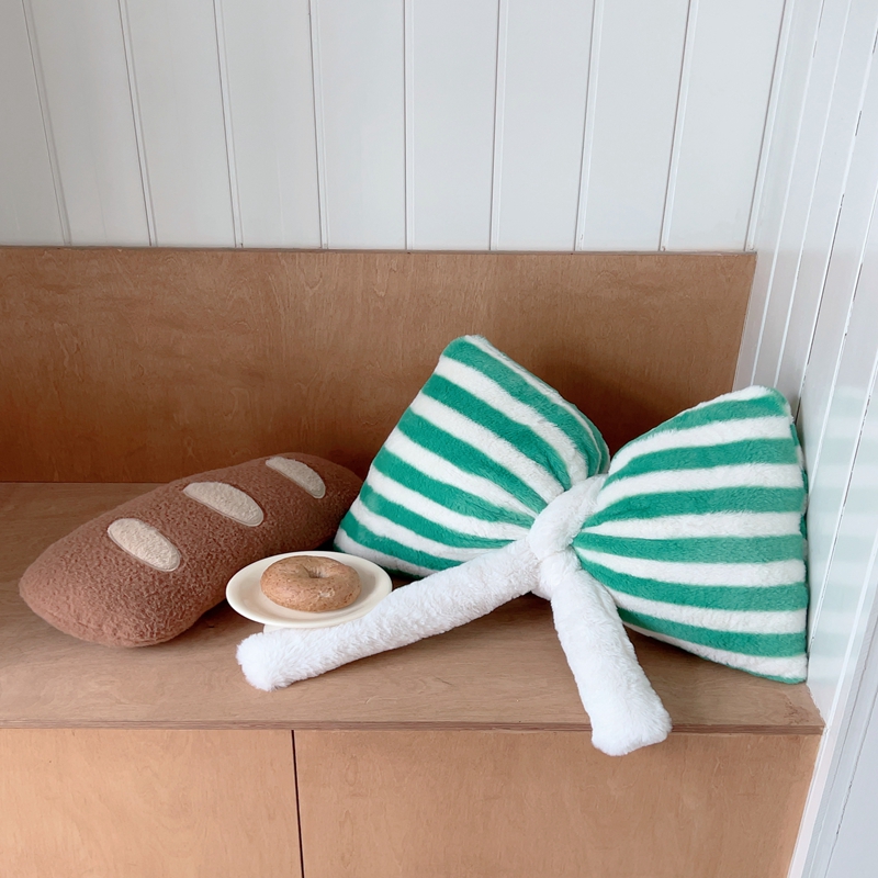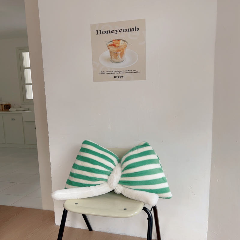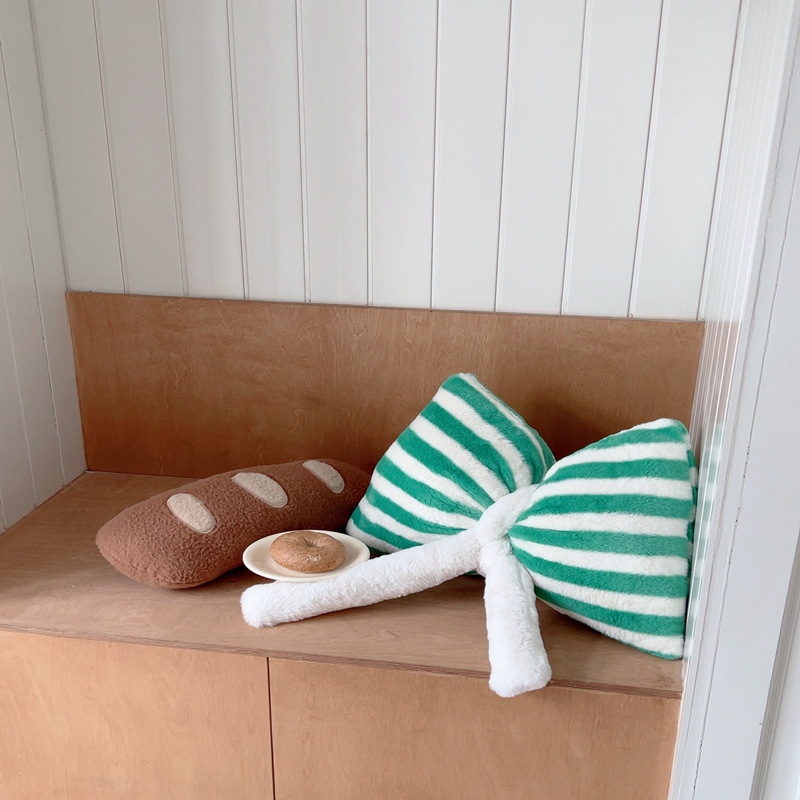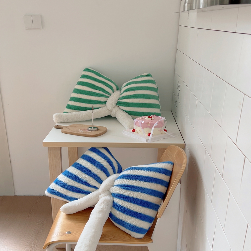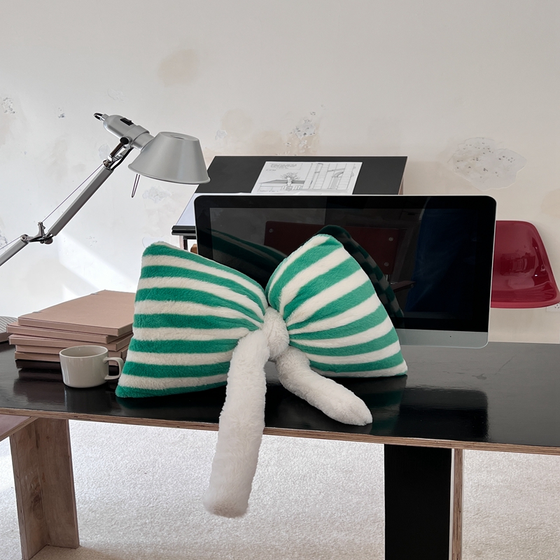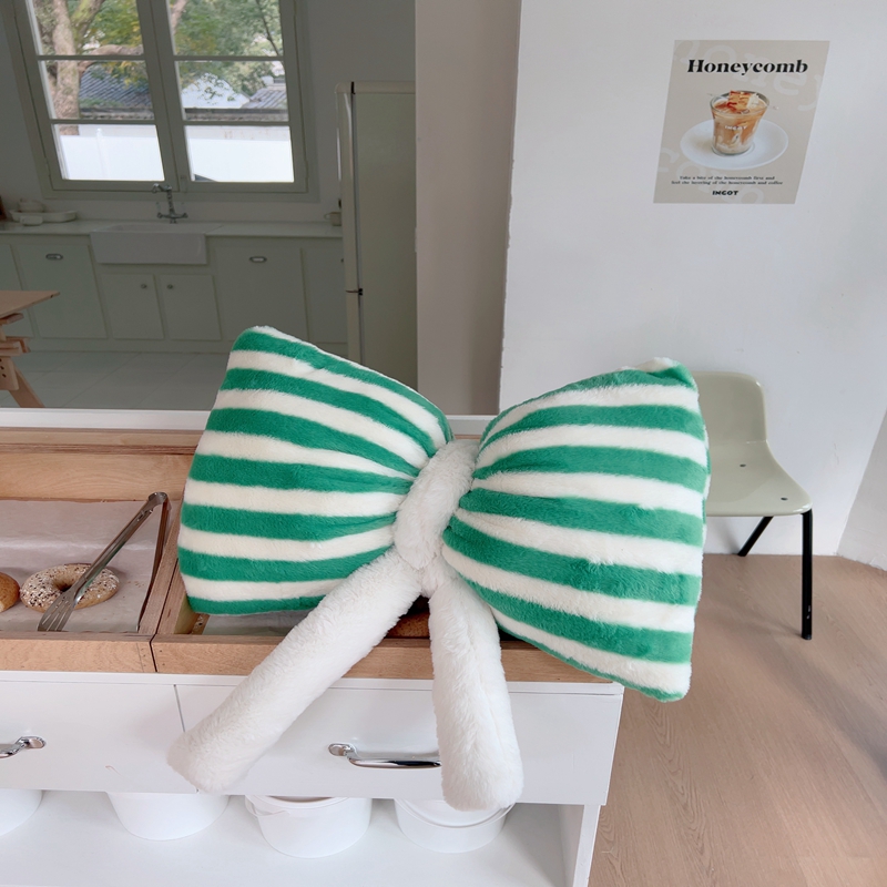 桔子家纺 2025新款蝴蝶结抱枕 绿条纹蝴蝶结