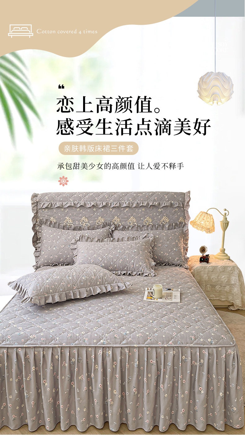 (总)十个点家纺 2025新款加厚磨毛木棉床裙三件套-绫罗系列,爱意萌萌,贝贝熊,格桑花,海棠花,蝴蝶兔,花千骨,米兰,木棉花,山茶花,同心结,心相印,心愿-米