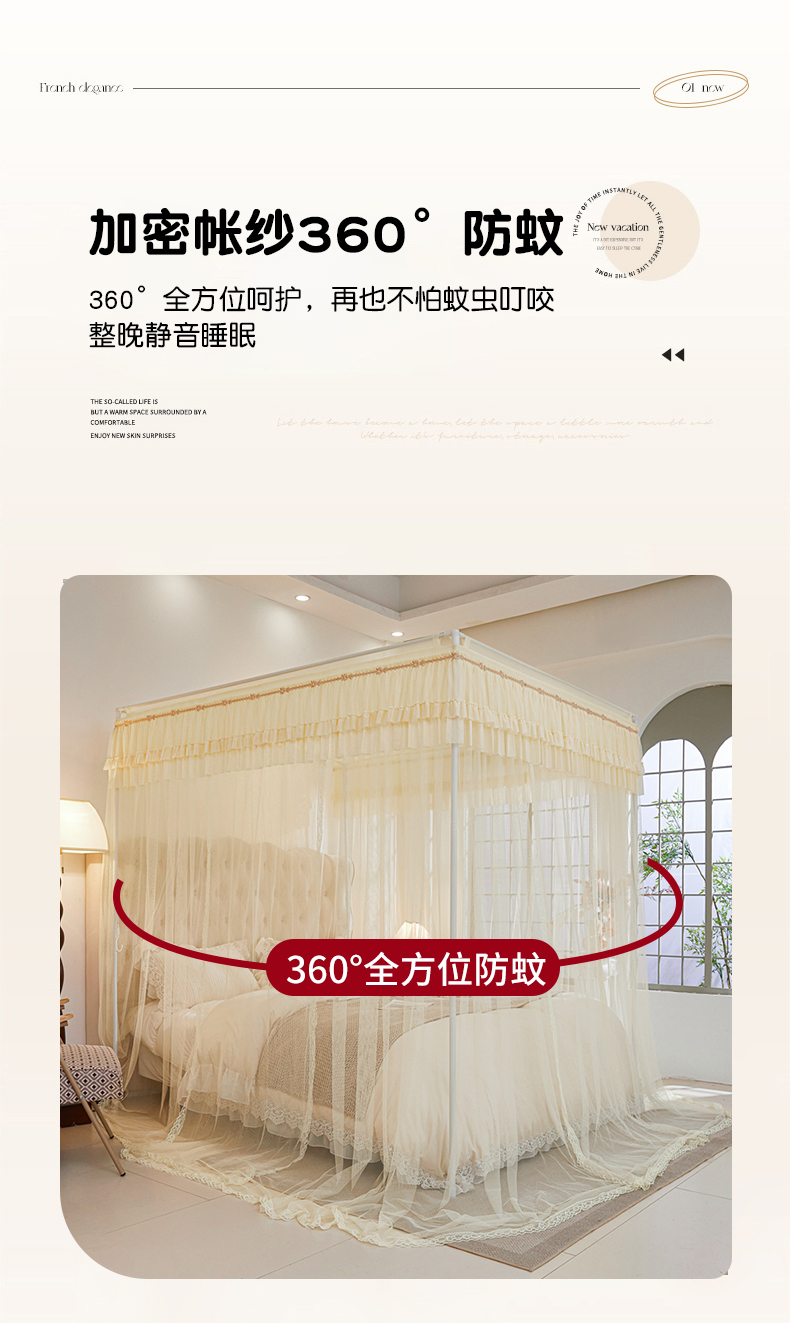 (总)梦尔佳蚊帐 2025新款双层花边床笠式三开门蚊帐-858怜香惜玉系列,优雅黄,富贵白,高级灰,温柔玉,清爽蓝