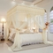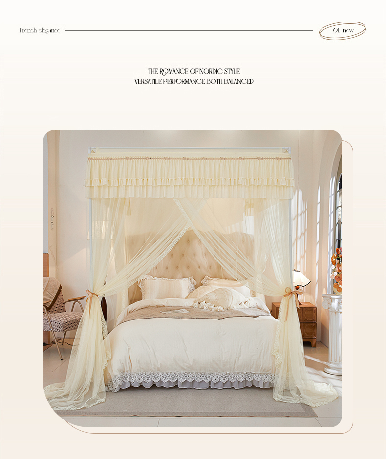 (总)2025新款双层花边全包围床笠款三开门蚊帐-幽梦星辰,奶黄,藕玉,颜淡蓝