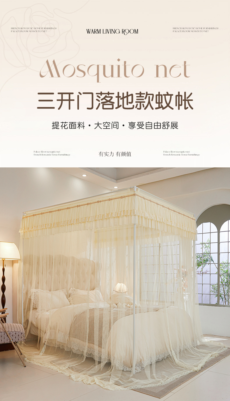 商品名称:梦尔佳 2025新款落地款蚊帐-赏心悦目系列860型号 米黄