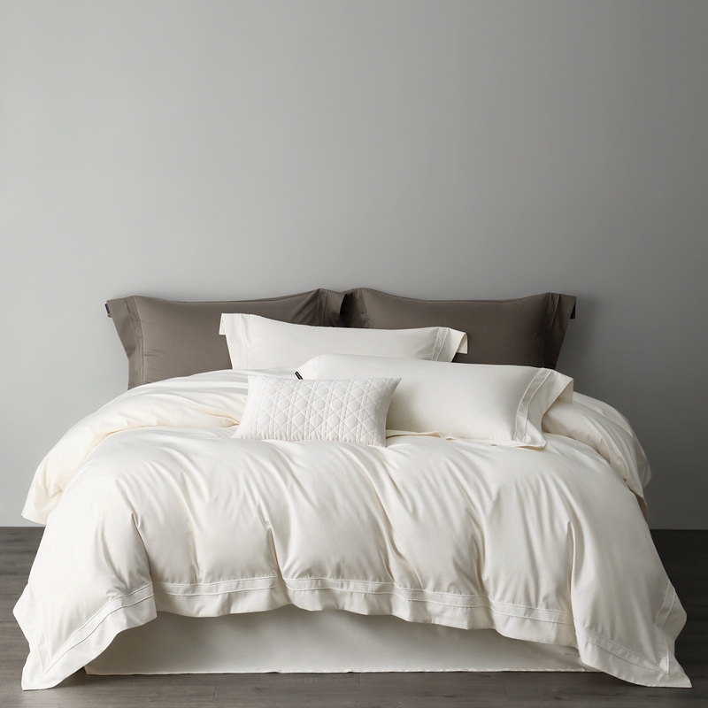 佳汐蓝家纺 2025新款极致简约质感埋绳全棉四件套-漫野观夏 云溪白