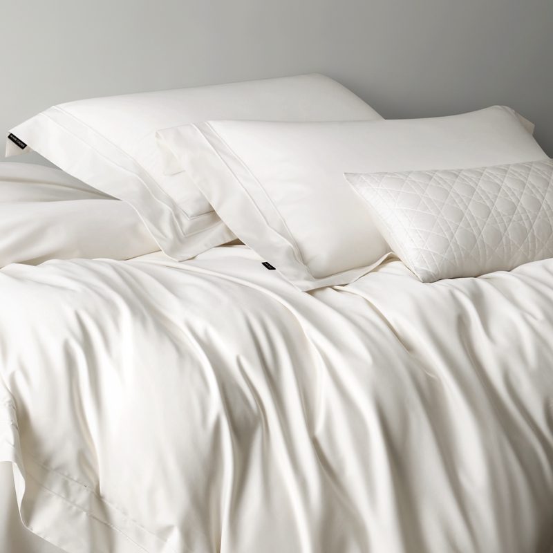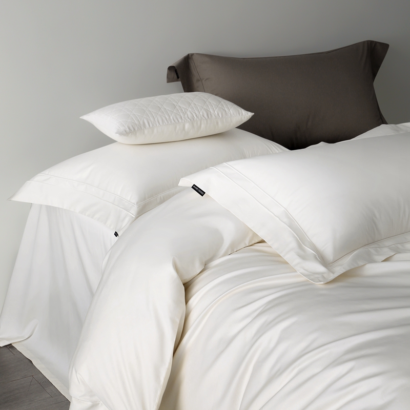 商品名称:佳汐蓝家纺 2025新款极致简约质感埋绳全棉四件套-漫野观夏 云溪白