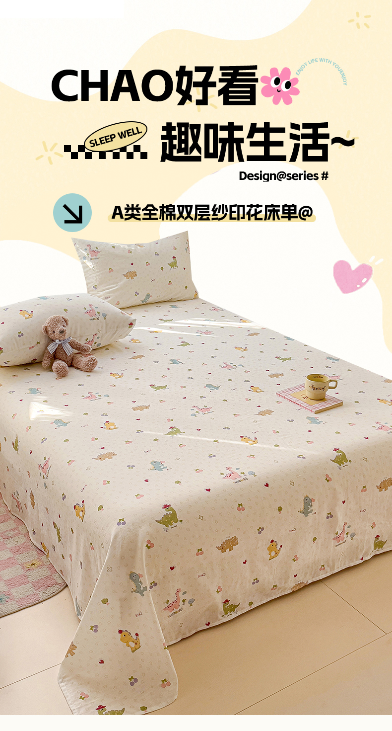名兮-2025新款全棉双层纱床单 双层纱-趣味王国