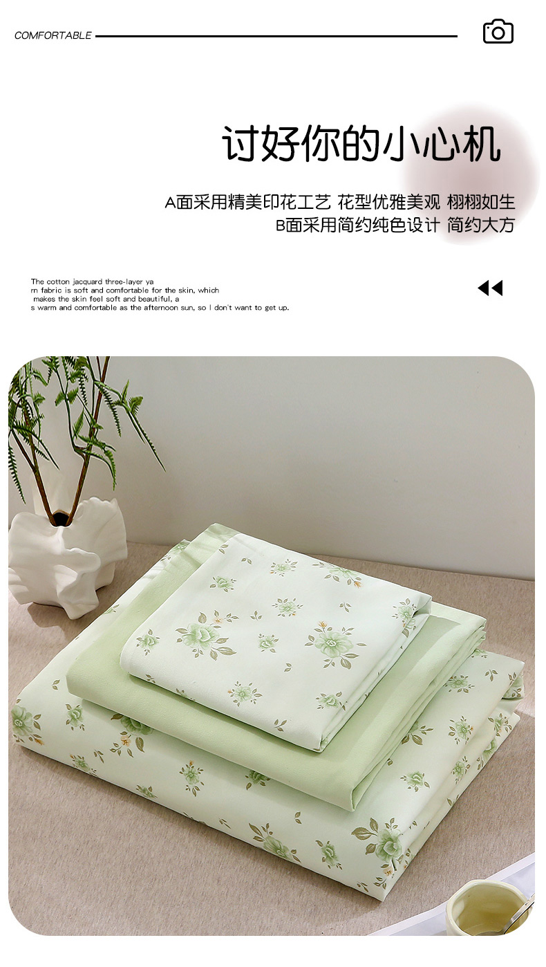 织写 2025新款A类双层纱针织棉四件套床单四件套床单四件套小清新四件套 琉璃,琉璃