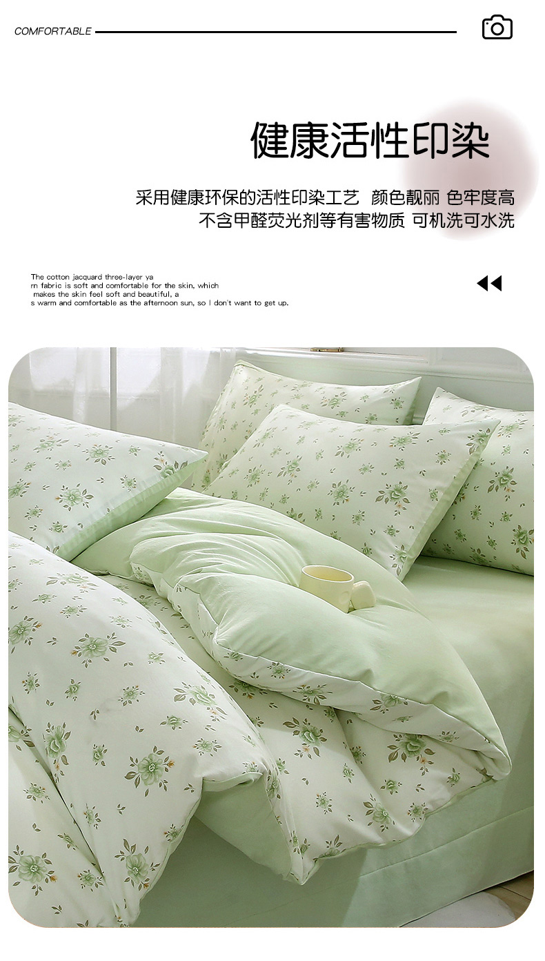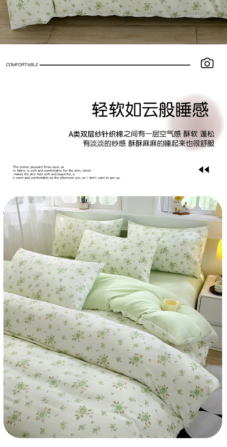 织写 2025新款A类双层纱针织棉四件套床单四件套床单四件套小清新四件套 春意盎然
