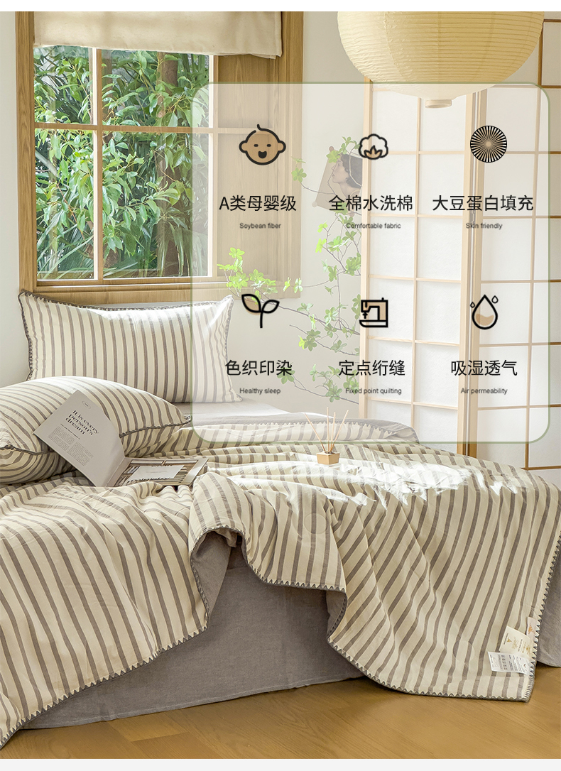 商品名称:(总)被窝 2025新款全棉色织水洗棉夏被贝壳边大豆夏被空调被全棉夏凉被(提供买家秀)