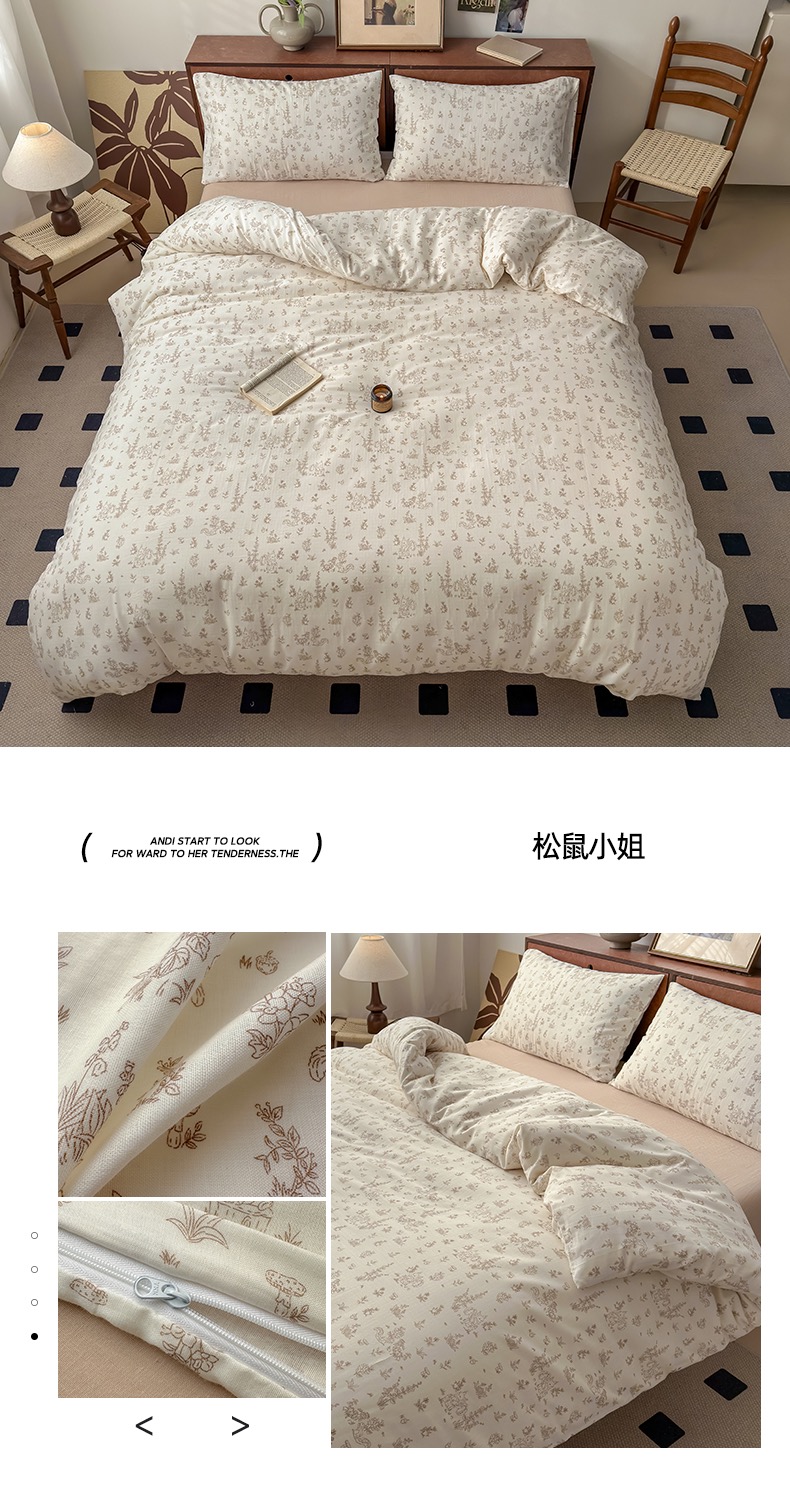 商品名称:典曼家纺 2025新款双层纱小清新印花四件套-叠拍 松鼠小姐