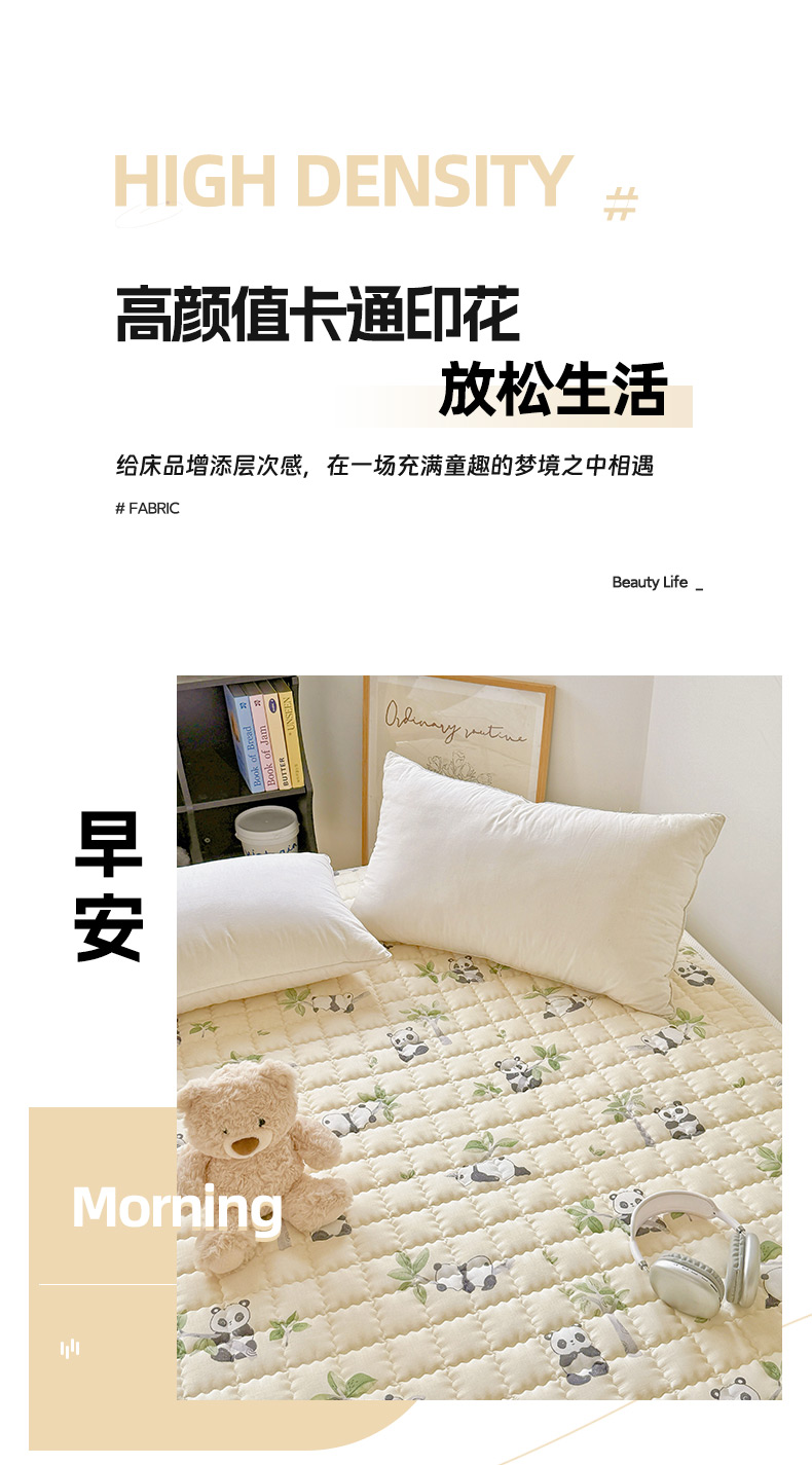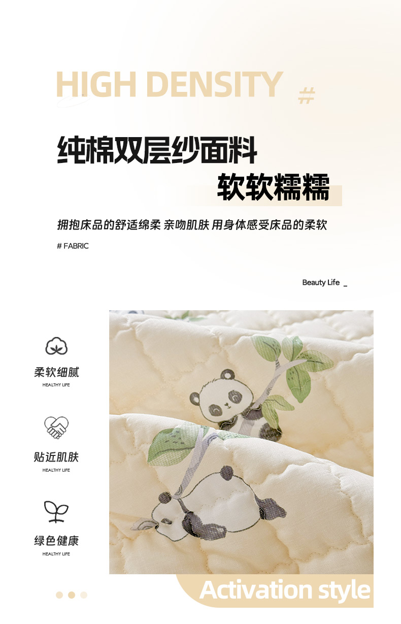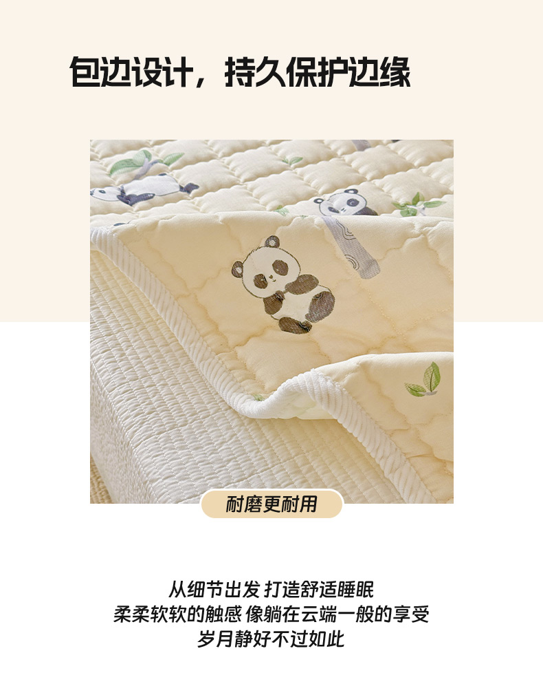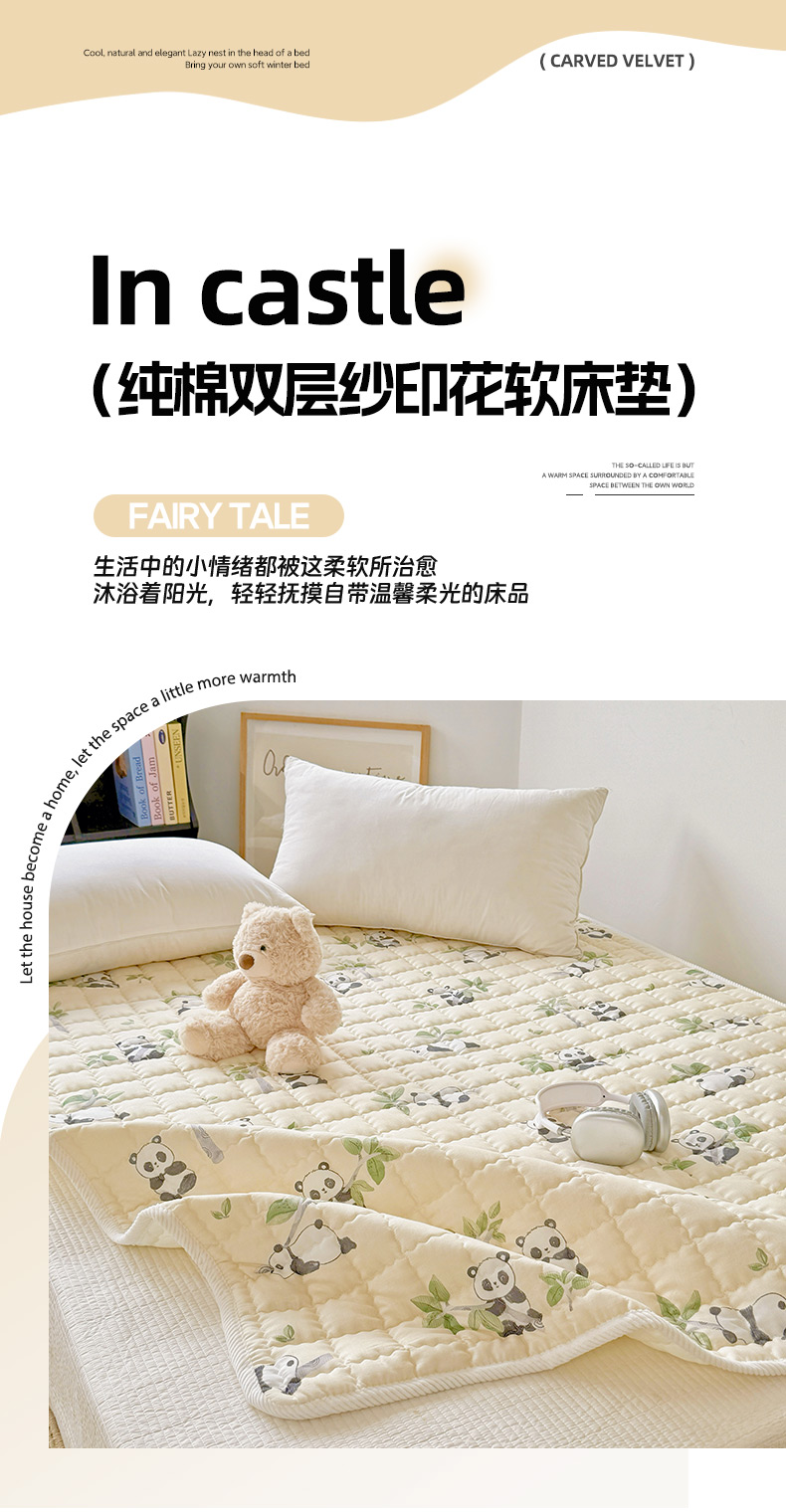 商品名称:澳萝拉 2025新款纯棉双层纱印花软床垫床褥 熊猫盼盼