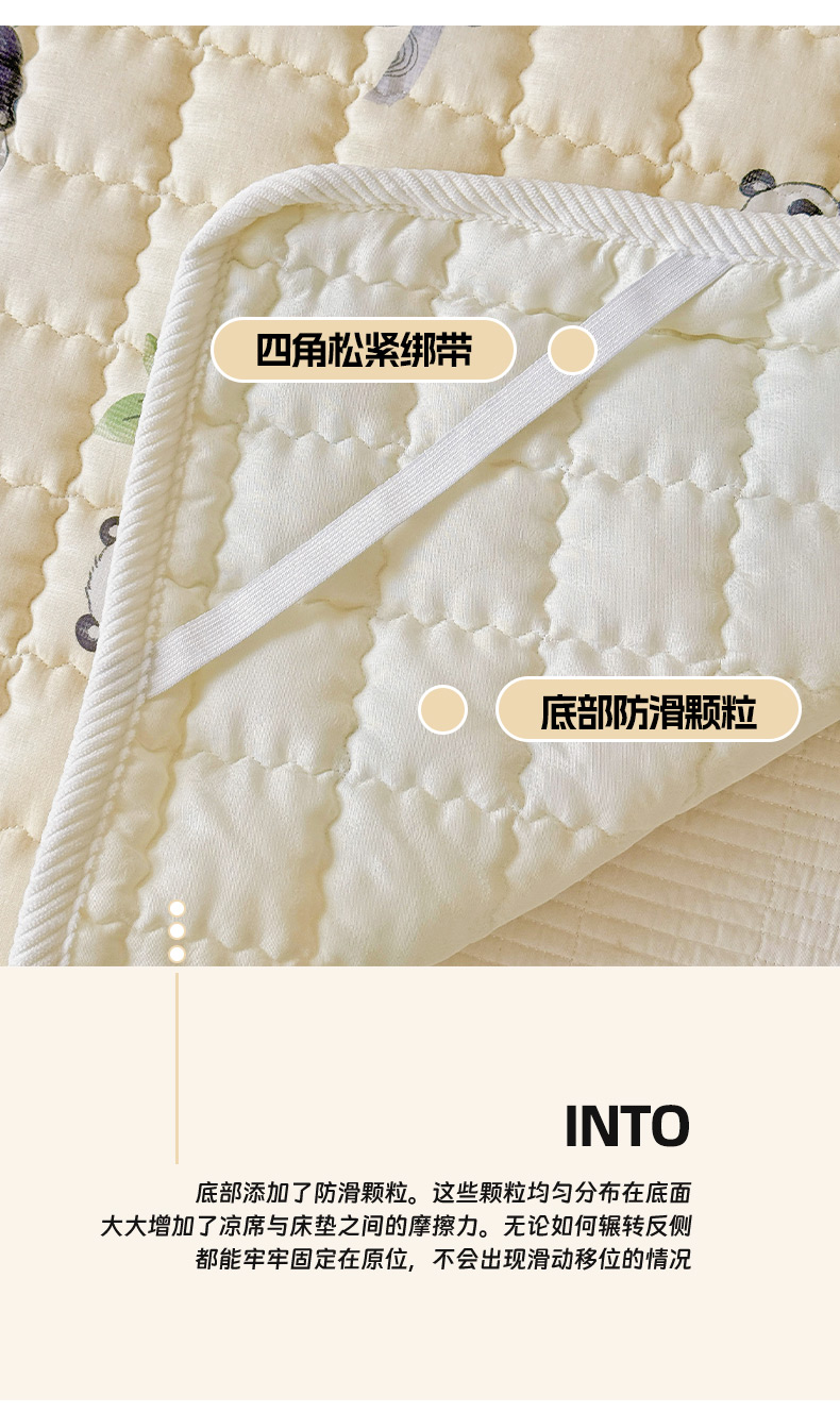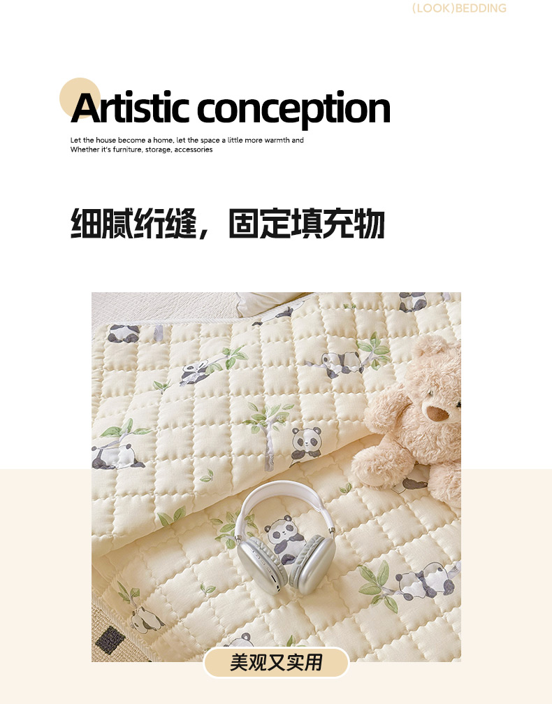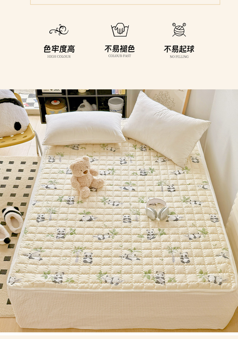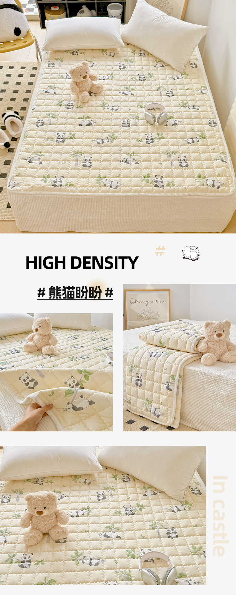 商品名称:澳萝拉 2025新款纯棉双层纱印花软床垫床褥 熊猫盼盼