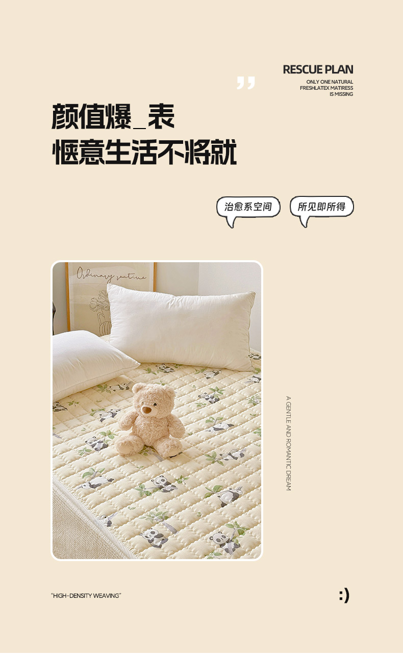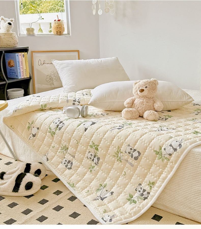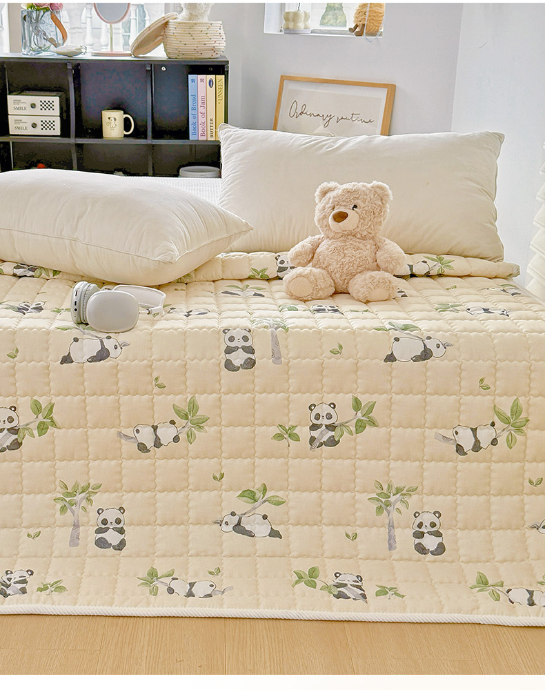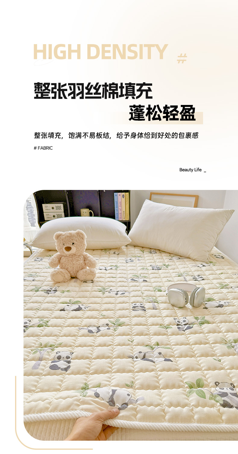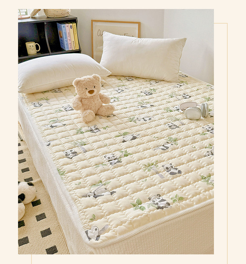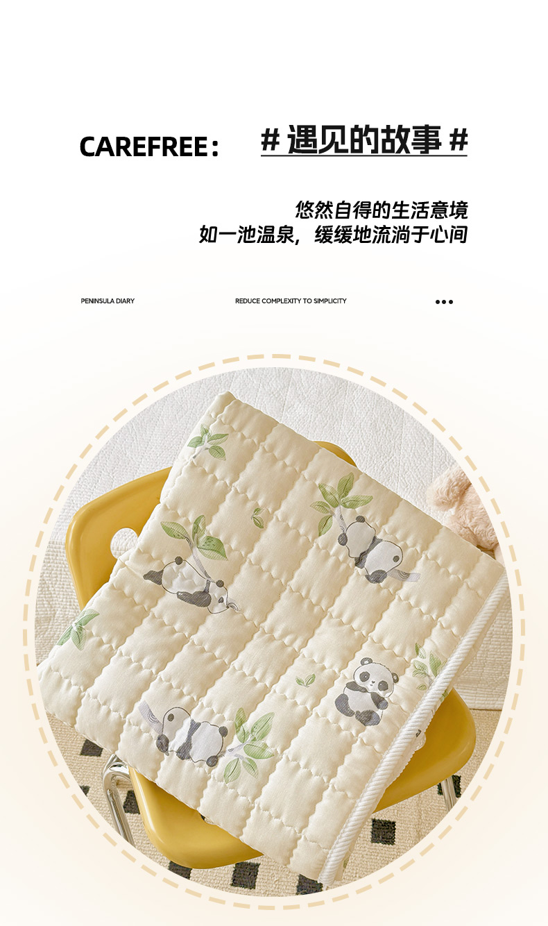 澳萝拉 2025新款纯棉双层纱印花软床垫床褥 熊猫盼盼