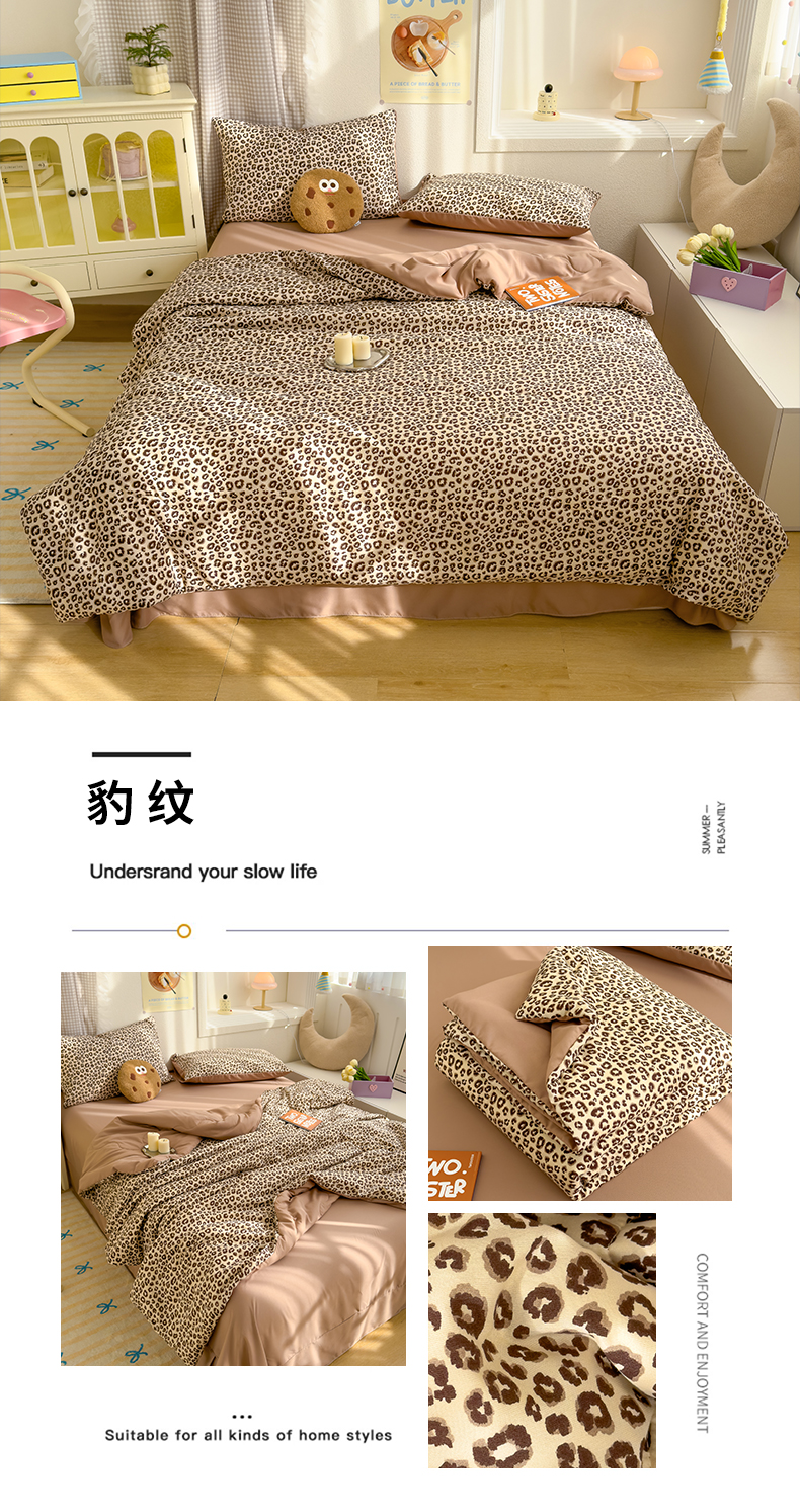 弗苓家纺 2025 A类有氧针织双层纱夏被四件套直播爆款 豹纹