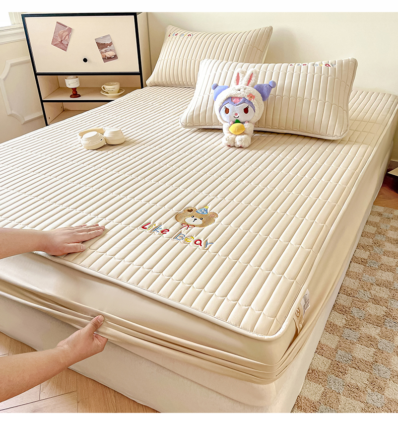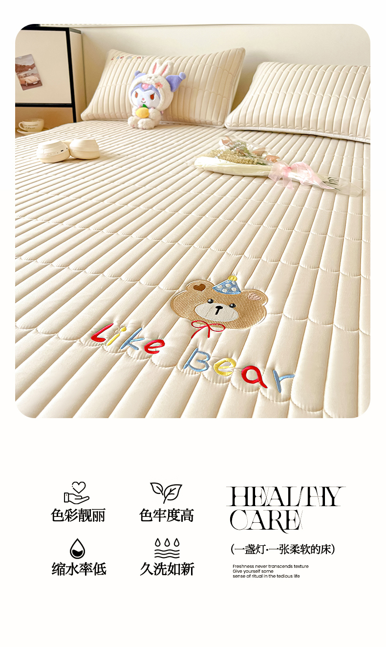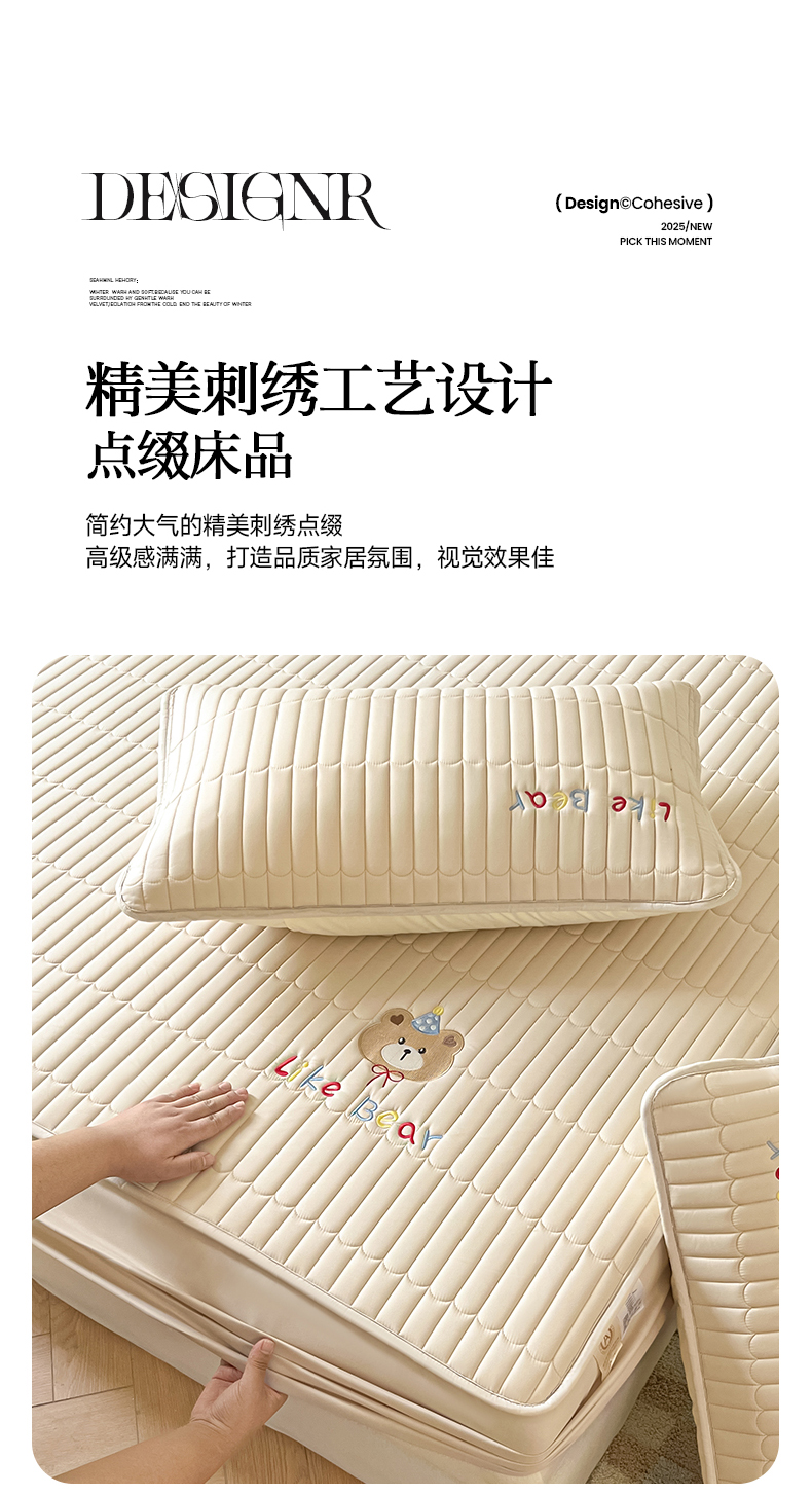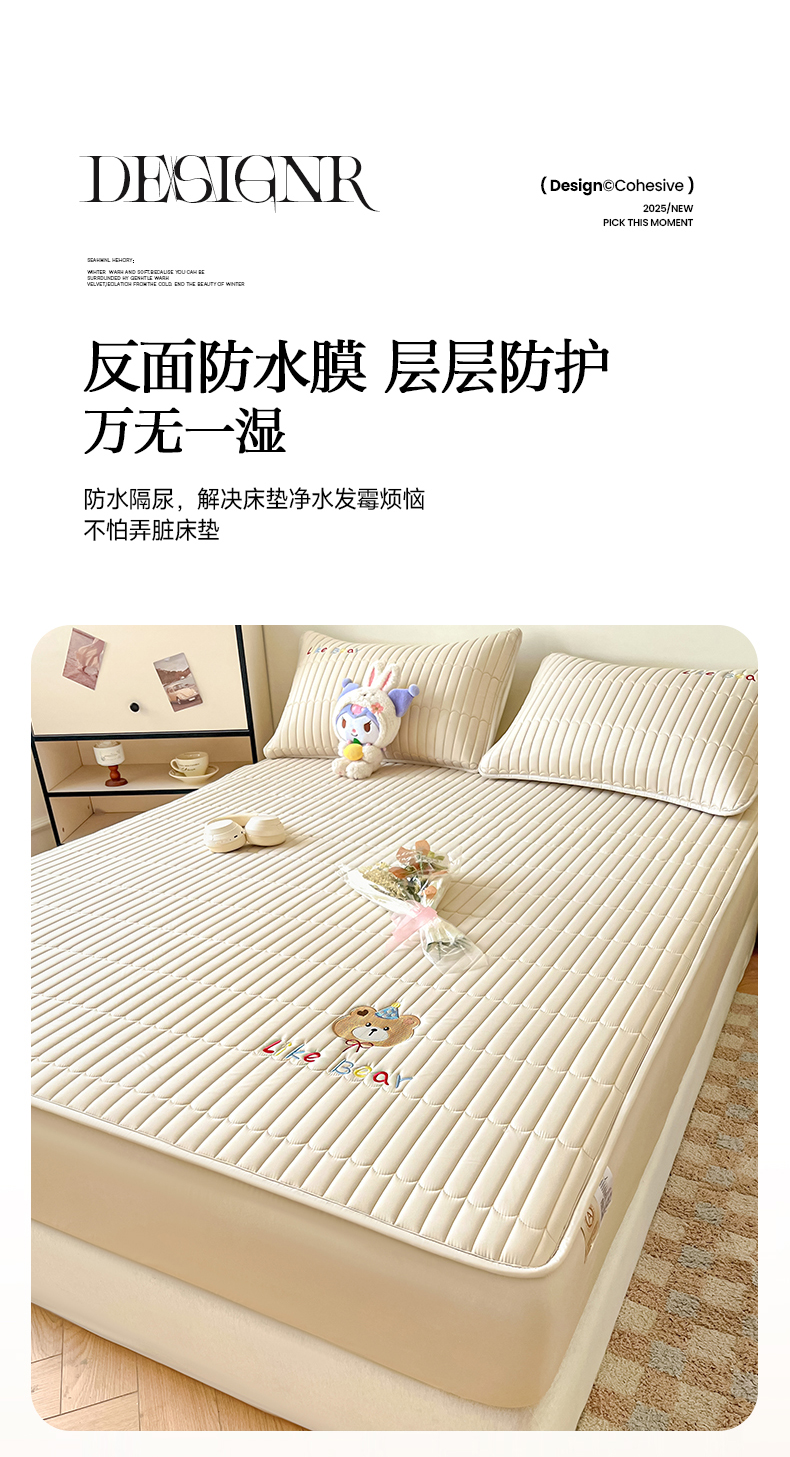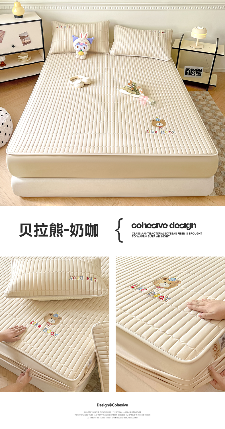 摩妮卡 2025新款夹棉防水刺绣床笠-贝拉熊 贝拉熊-奶咖