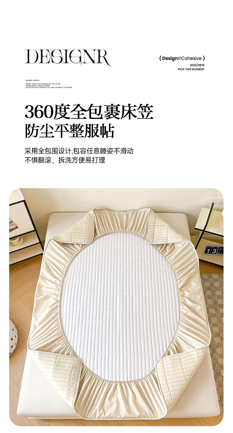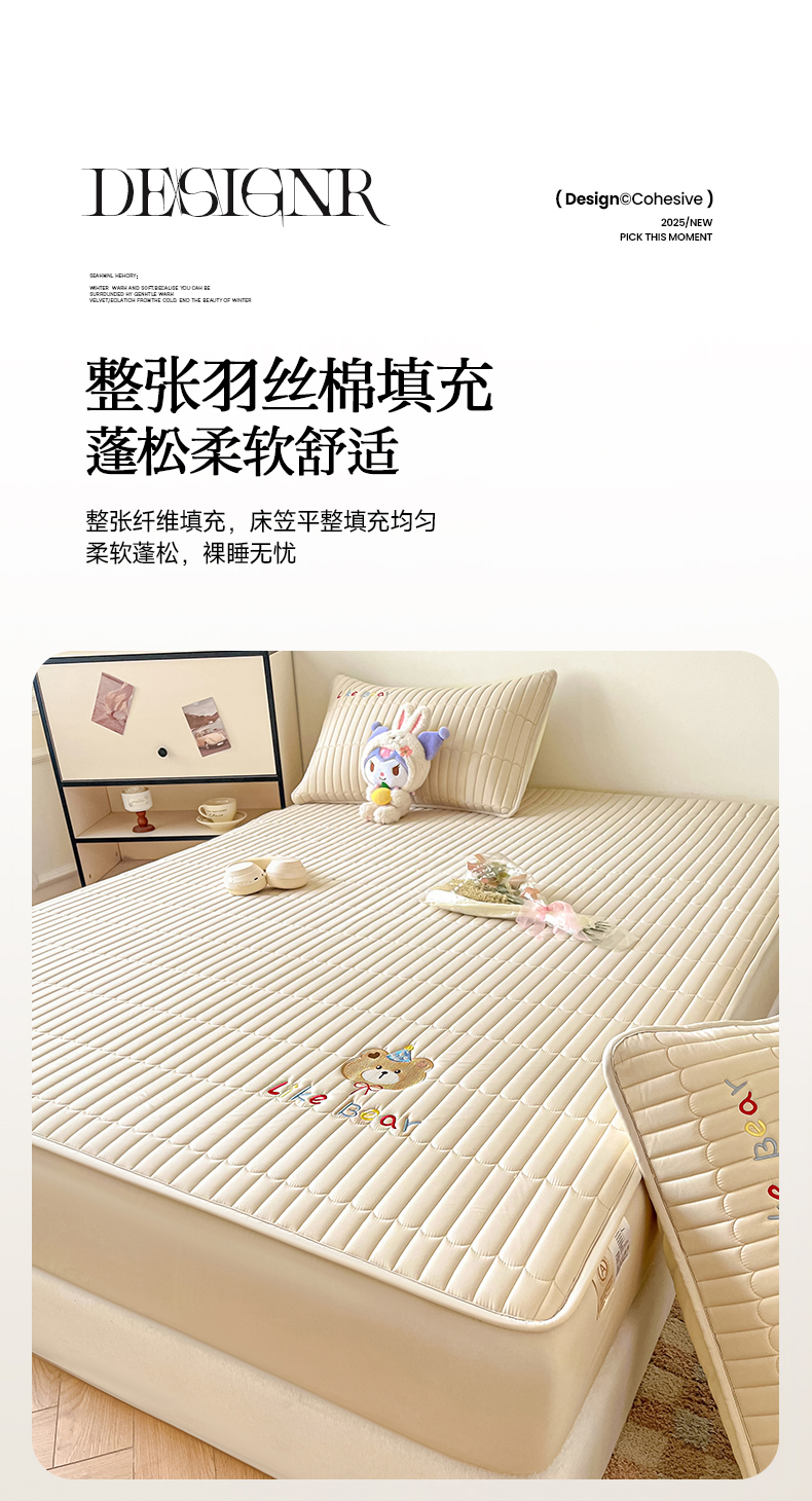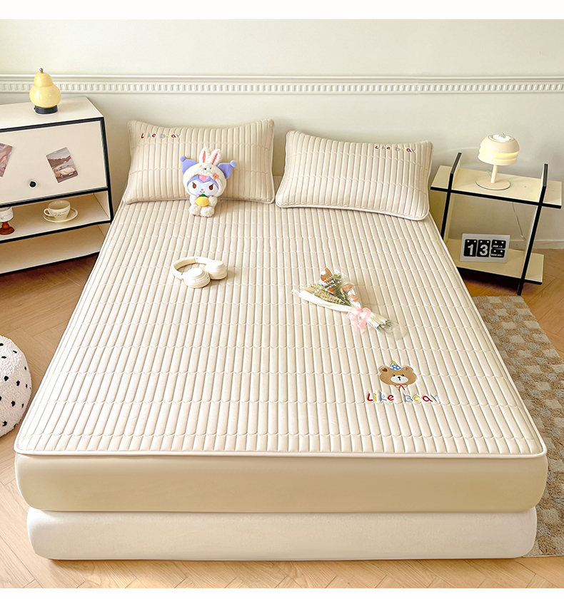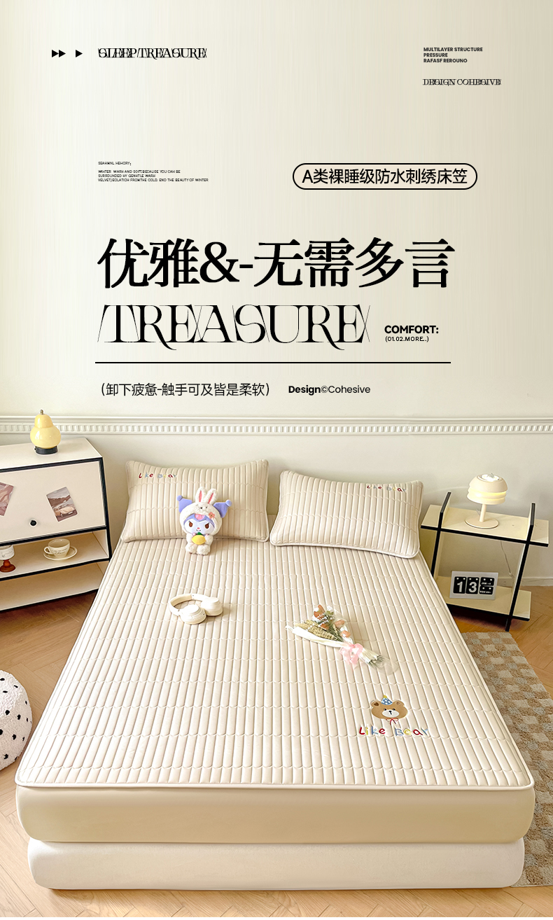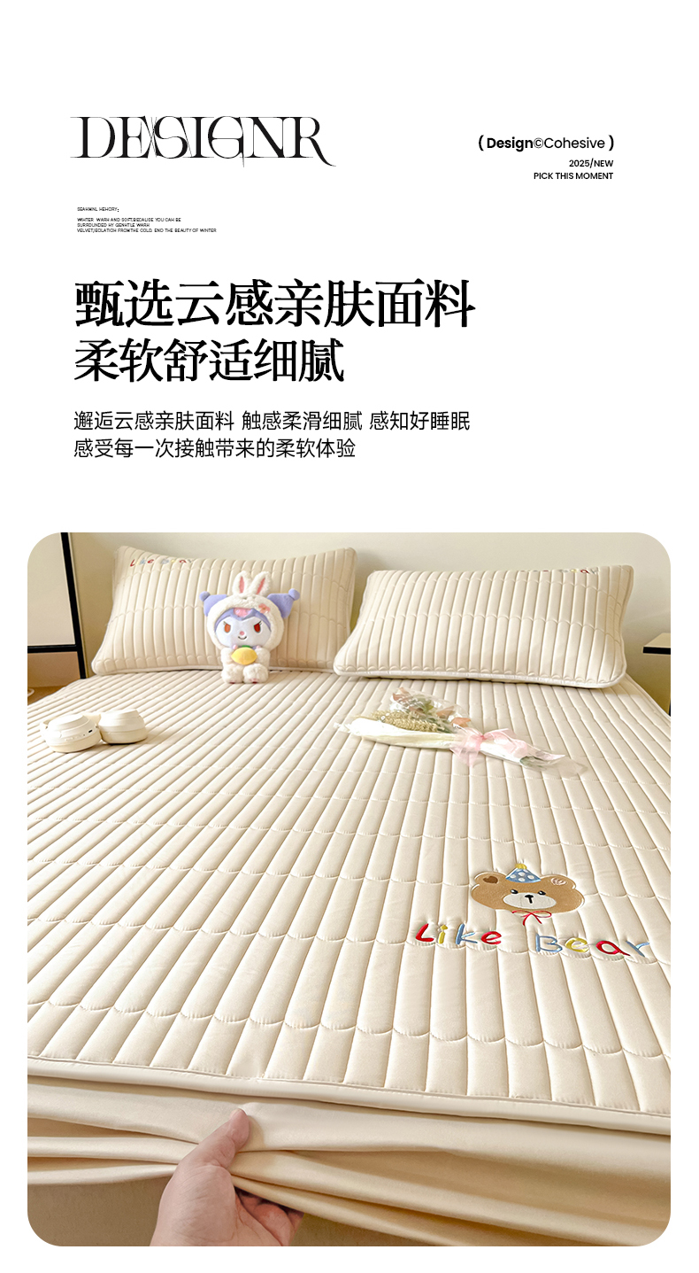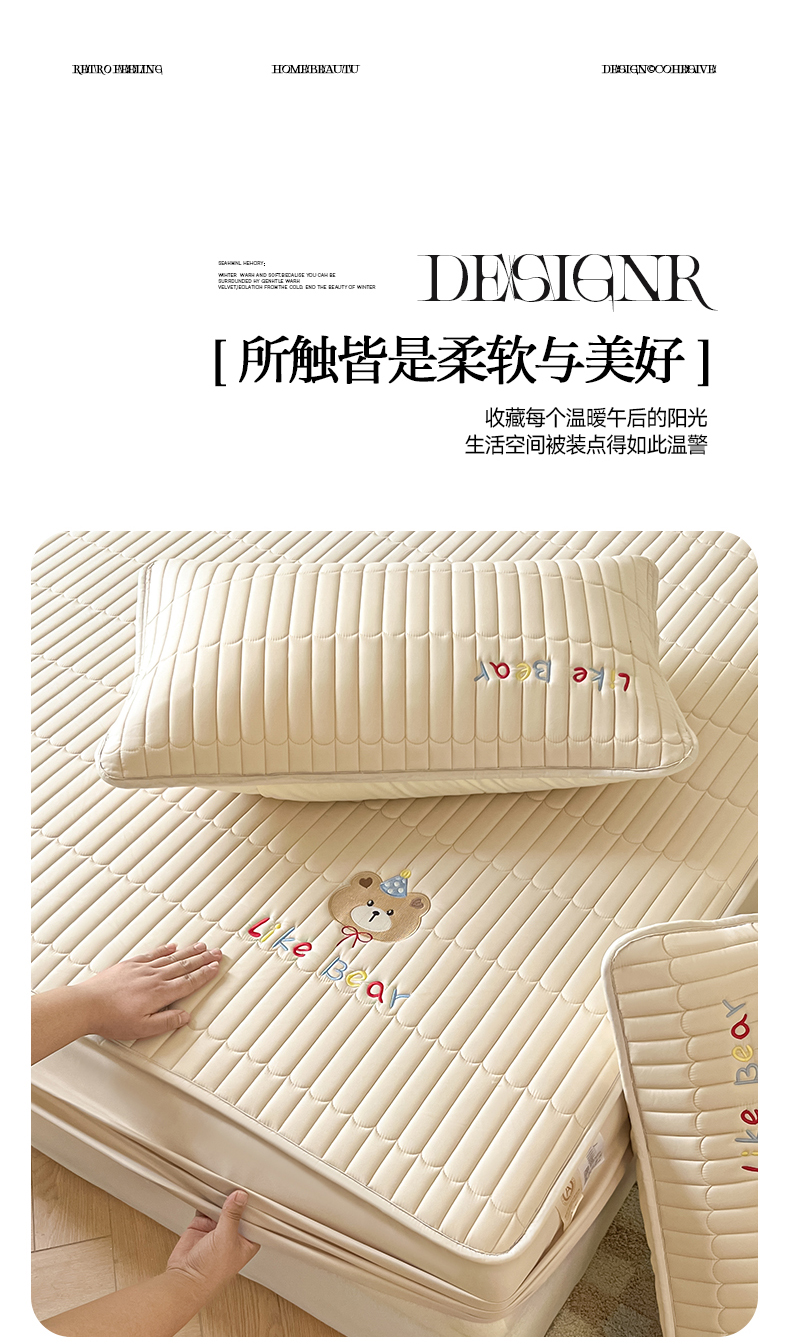 摩妮卡 2025新款夹棉防水刺绣床笠-贝拉熊 贝拉熊-奶咖