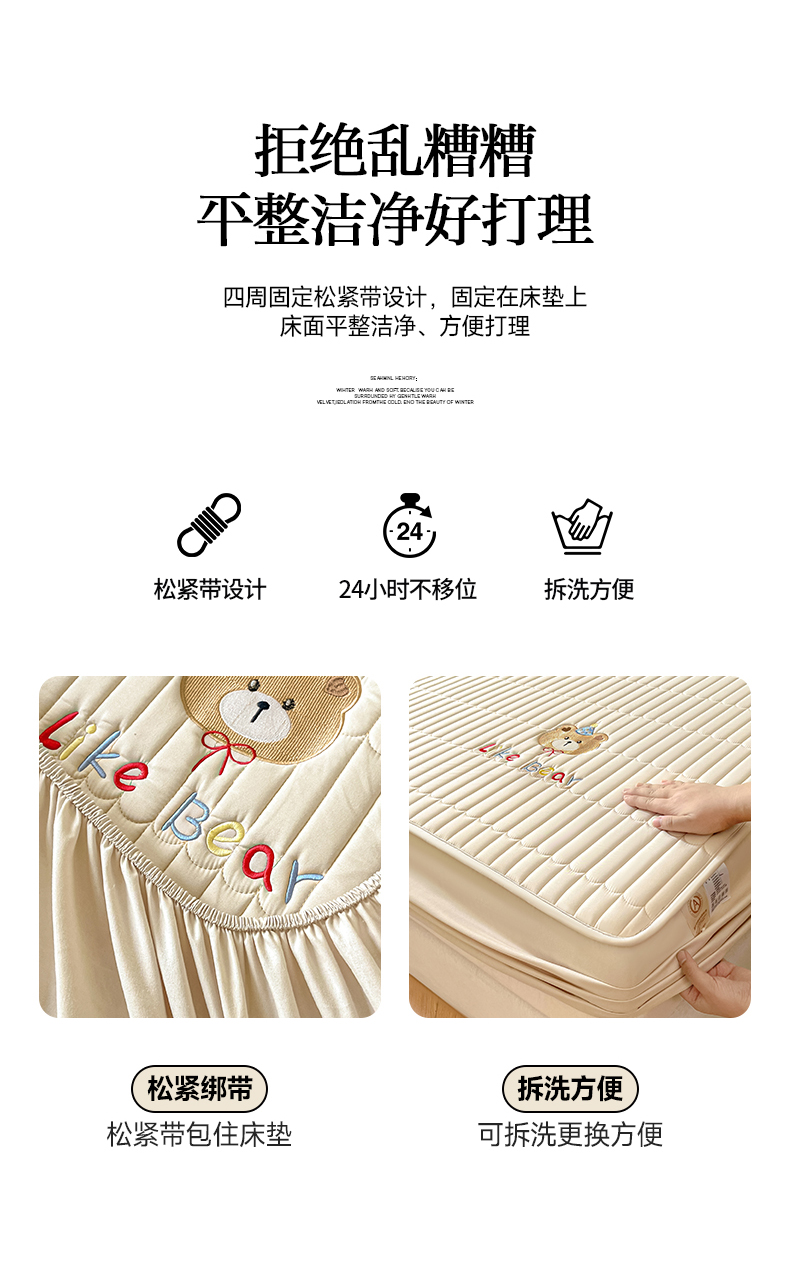 • 91家纺网 家纺一手货源 找家纺 摩妮卡 2025新款夹棉防水刺绣床笠-贝拉熊 贝拉熊-奶咖