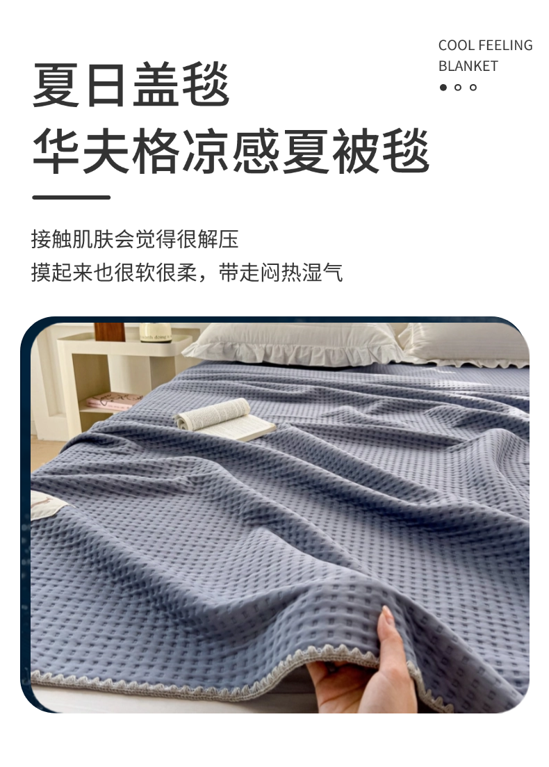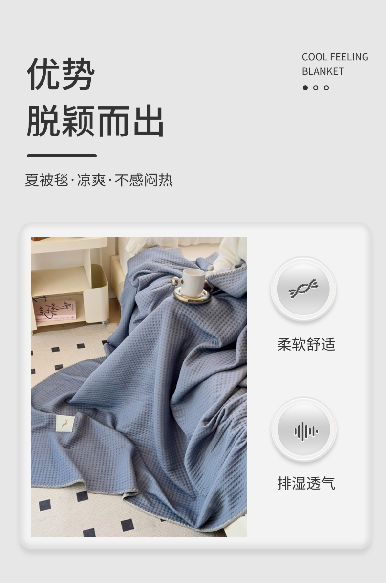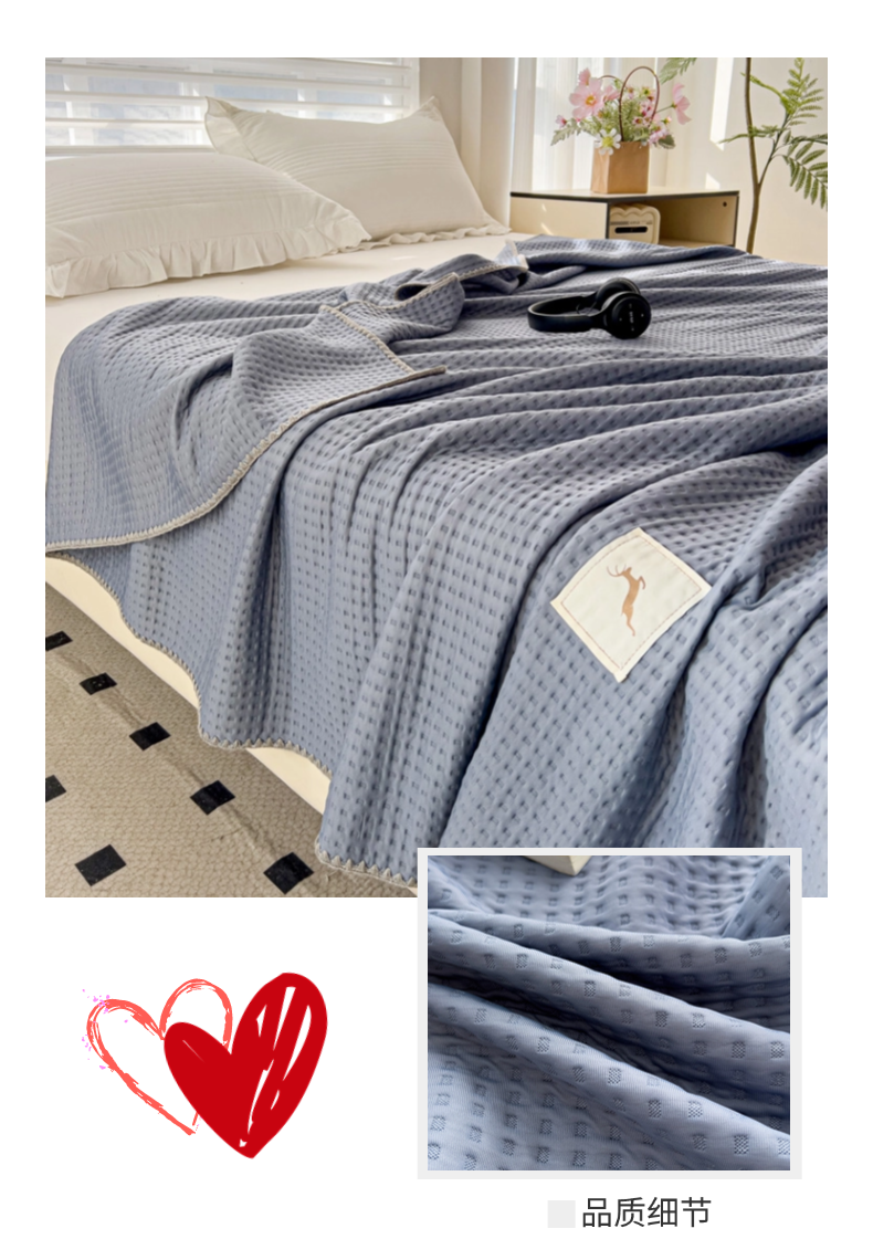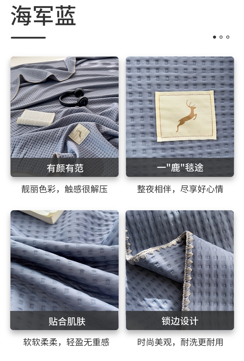 商品名称:十九色 2025新款全尺寸三角针盖毯夏被华夫格双面冷感夏被毯 海军蓝