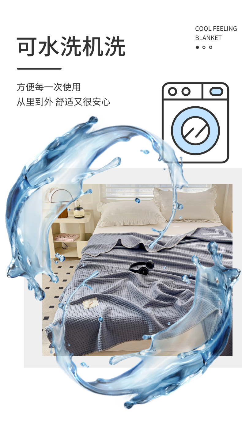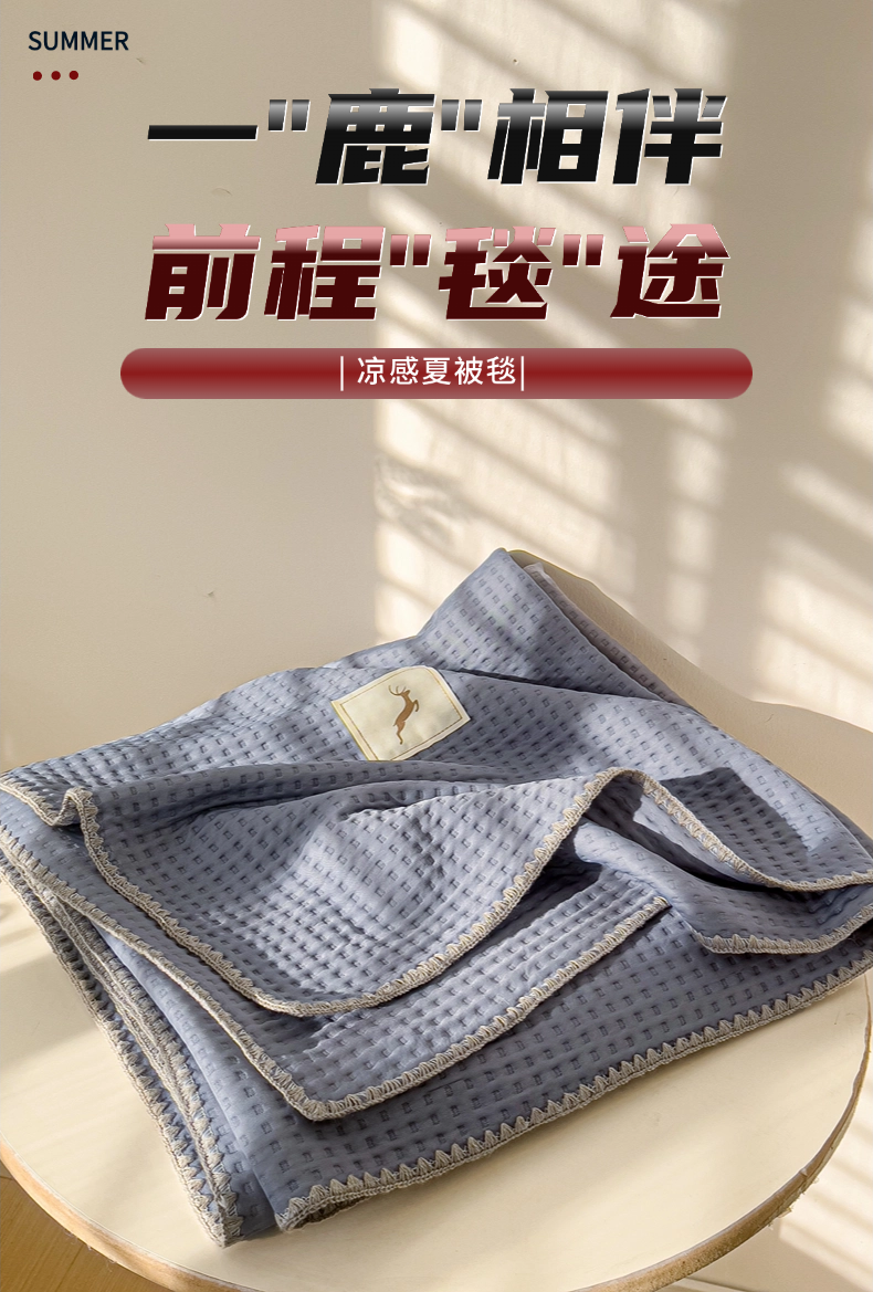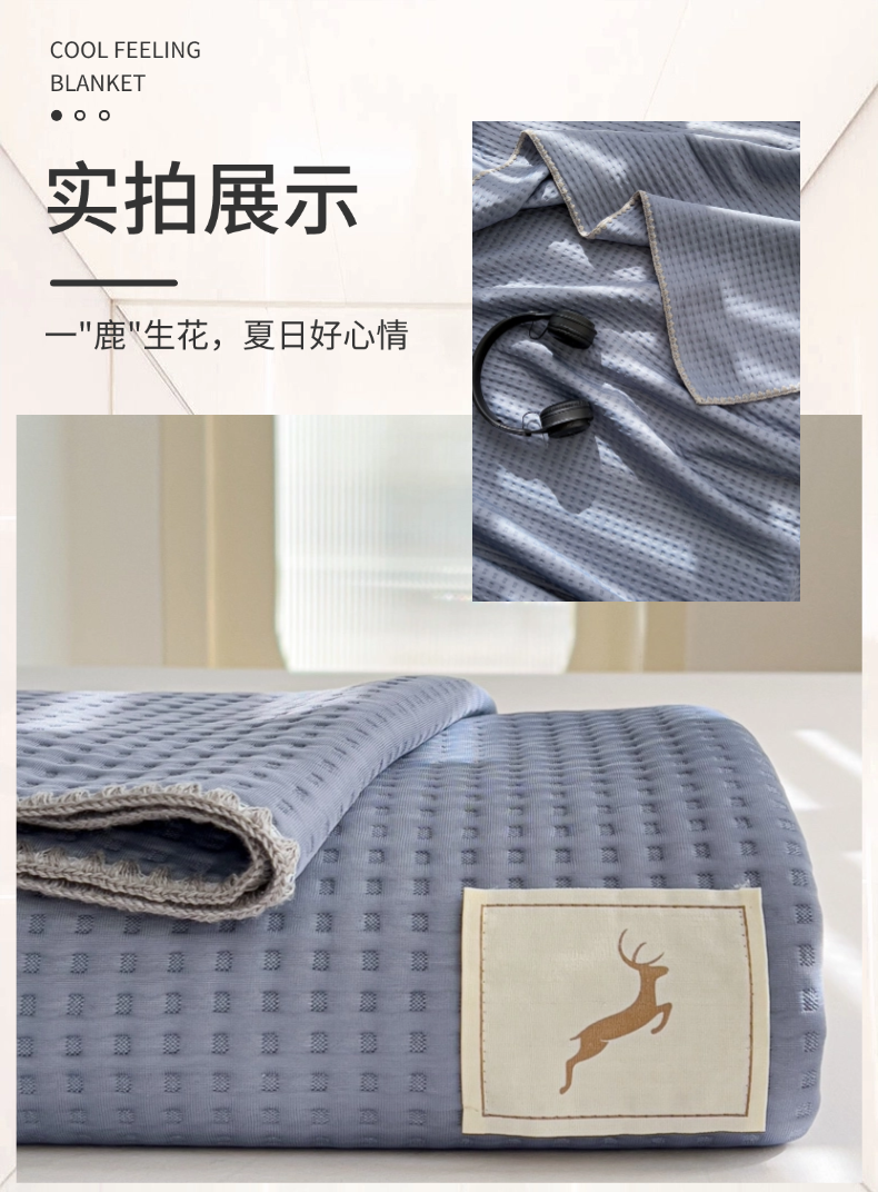 商品名称:十九色 2025新款全尺寸三角针盖毯夏被华夫格双面冷感夏被毯 海军蓝