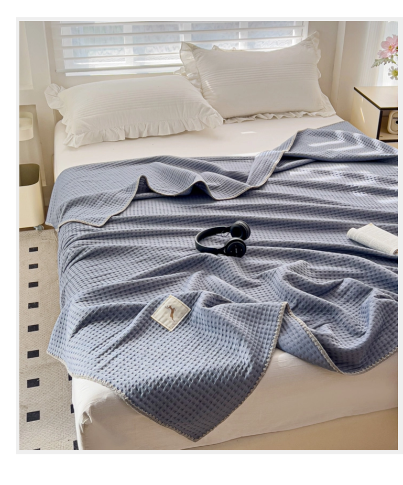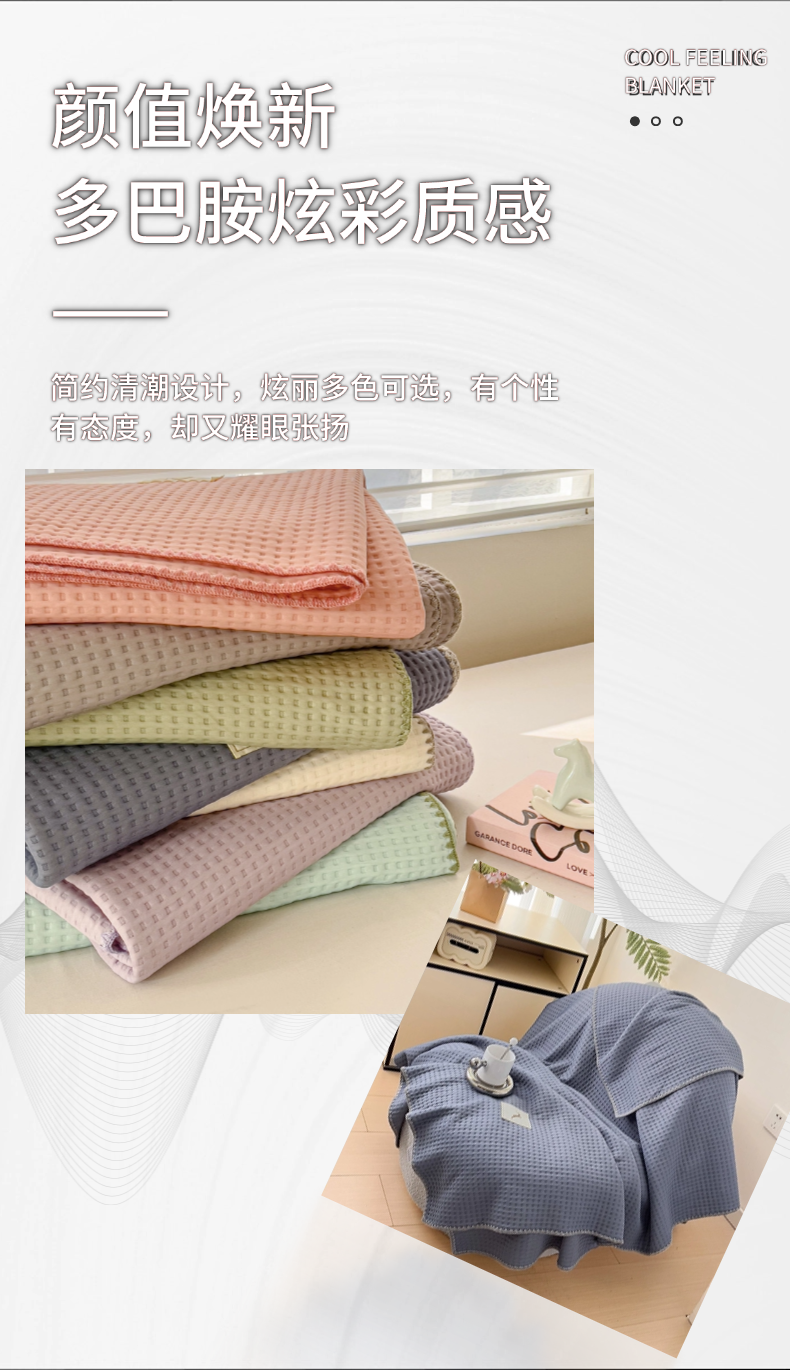 (总)十九色 2025新款全尺寸三角针盖毯夏被华夫格双面冷感夏被毯,淡绛红,海军蓝,海天蓝,幻影灰,抹茶绿,牵牛紫,象牙白