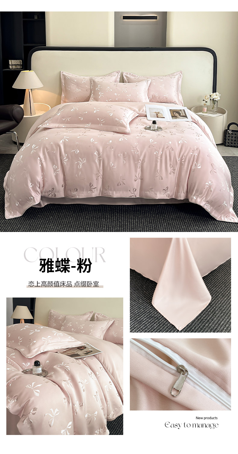商品名称:金阳光家纺 2025新款亮丝提花水洗天丝四件套 雅蝶-粉
