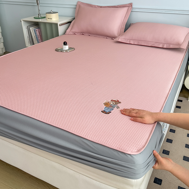 卡初家居 2025新款A类豆豆凉感席席子凉席-多比来了 多比来了-粉玉(床笠)