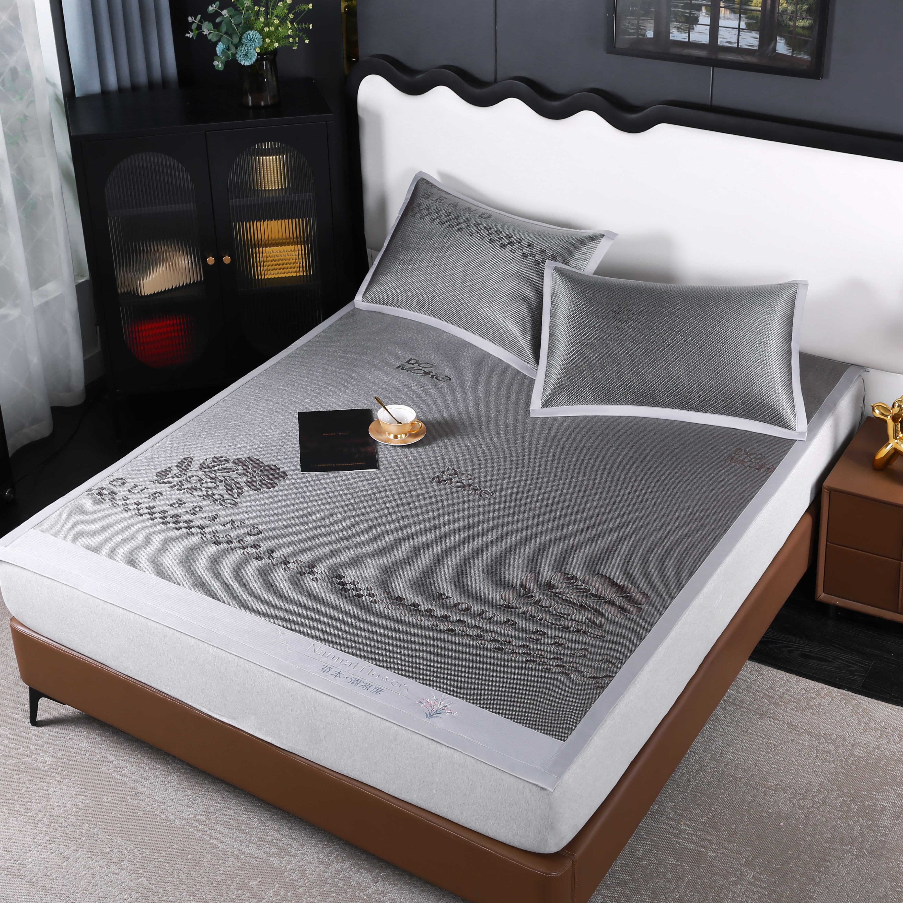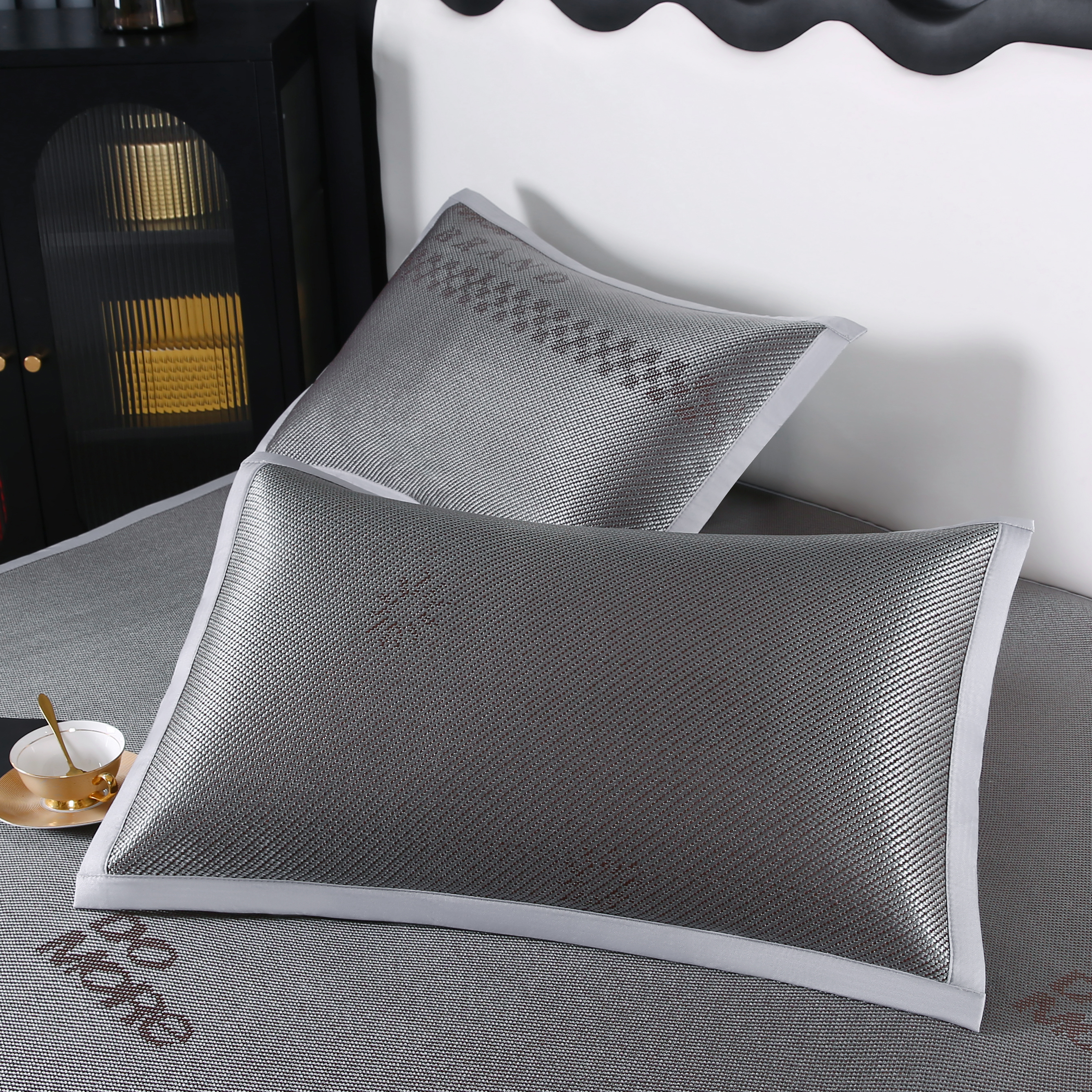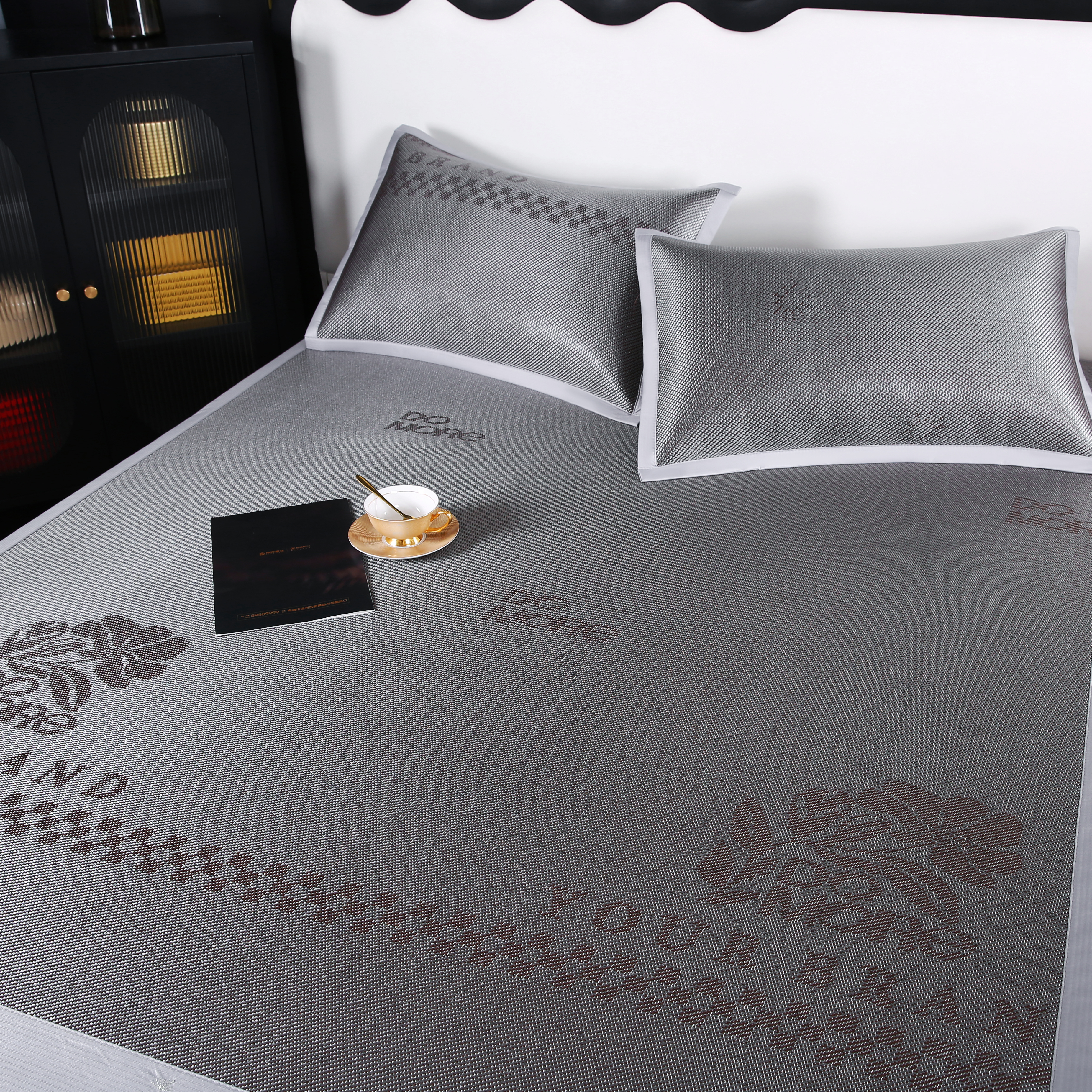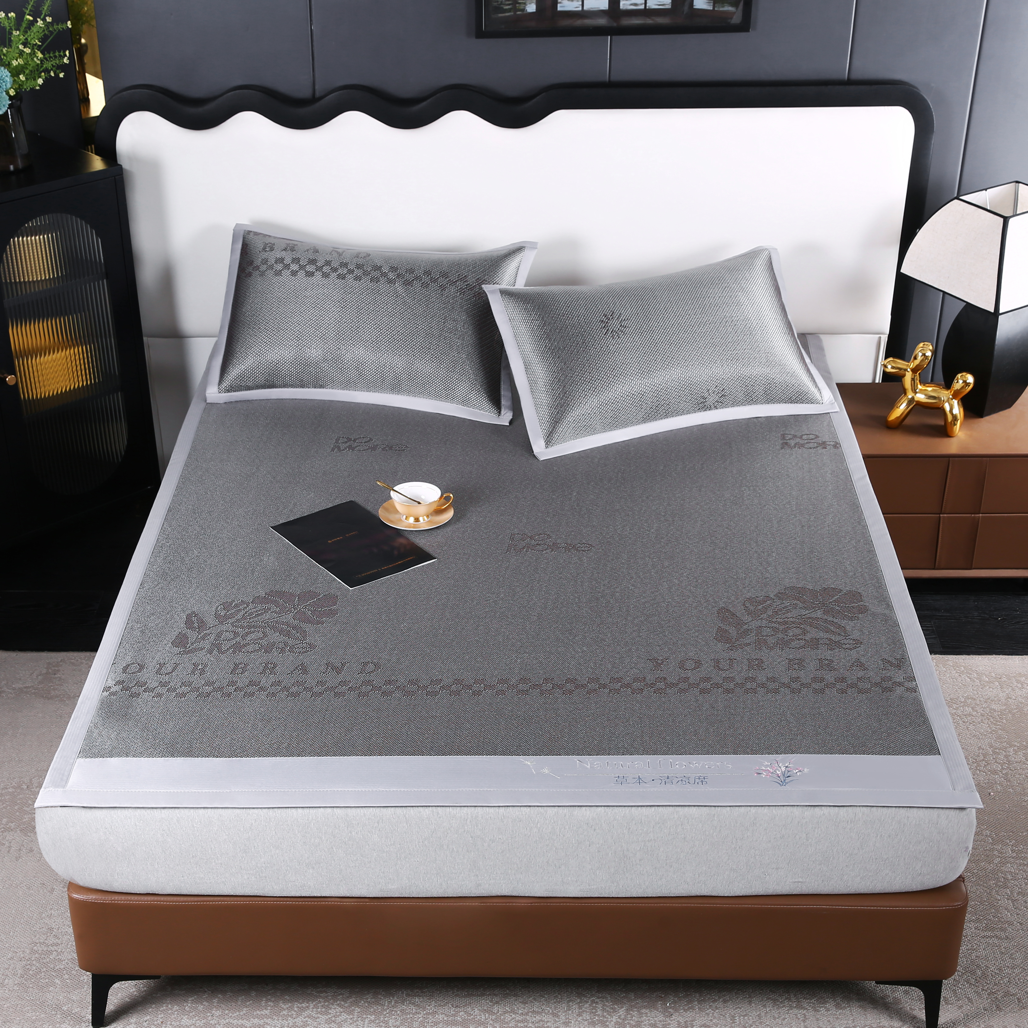 商品名称:2025新款加厚冰藤席凉席三件套宽包边刺绣款三明治冰藤凉席 灰色